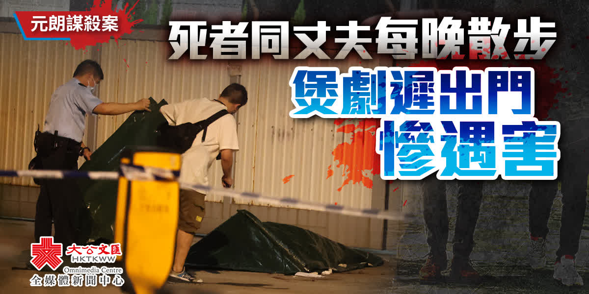 大公文匯全媒體報道,元朗昨(20日)晚發生謀殺案,一名54歲女子死亡,警方在現場檢獲電鋸、牛肉刀等,案件交由元朗警區重案組調查。據悉,劉姓女死者與丈夫「球叔」為包租公婆,生活美滿無憂,兩人每日晚飯後會出門散步,惟昨日劉婦「煲電視劇」遲出門,未與丈夫同行,慘遭殺害。