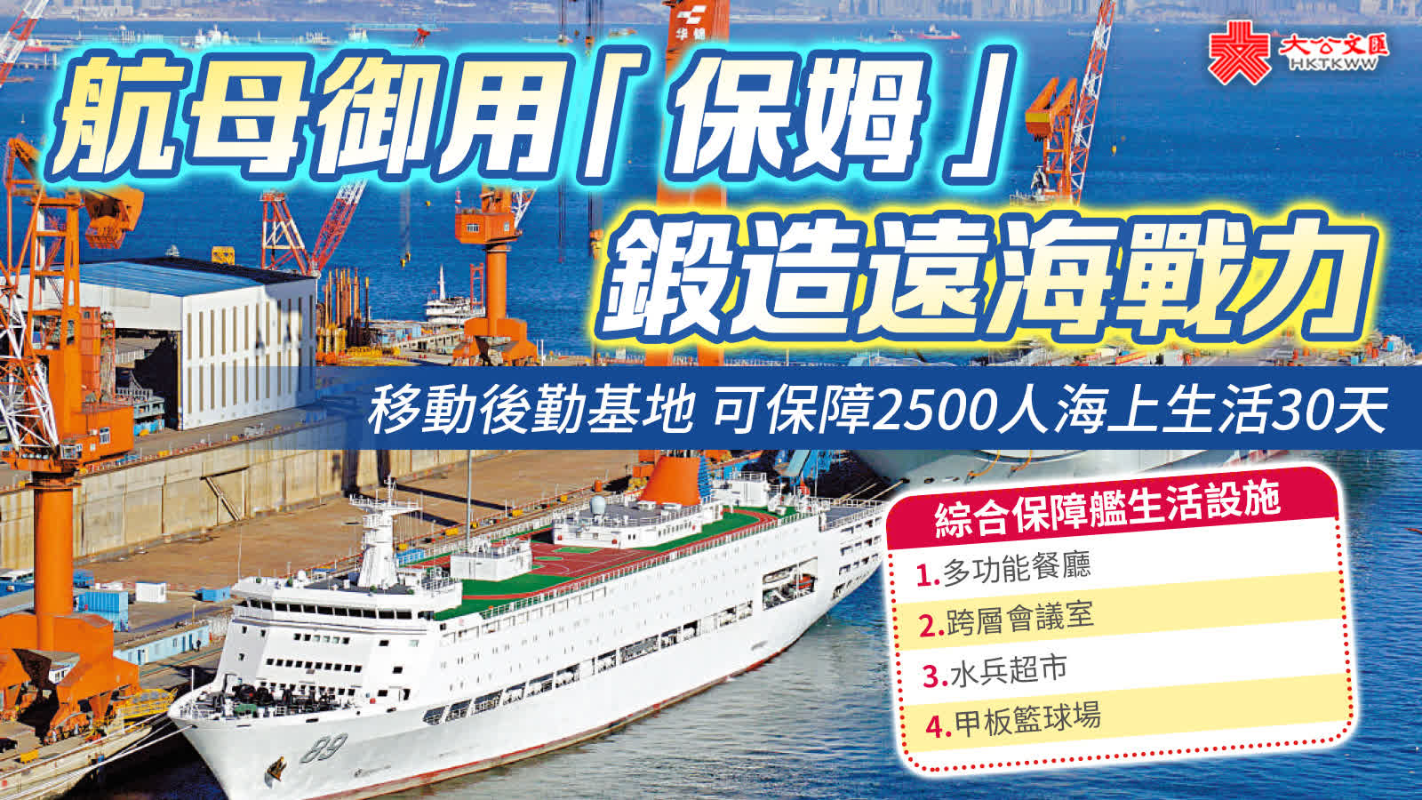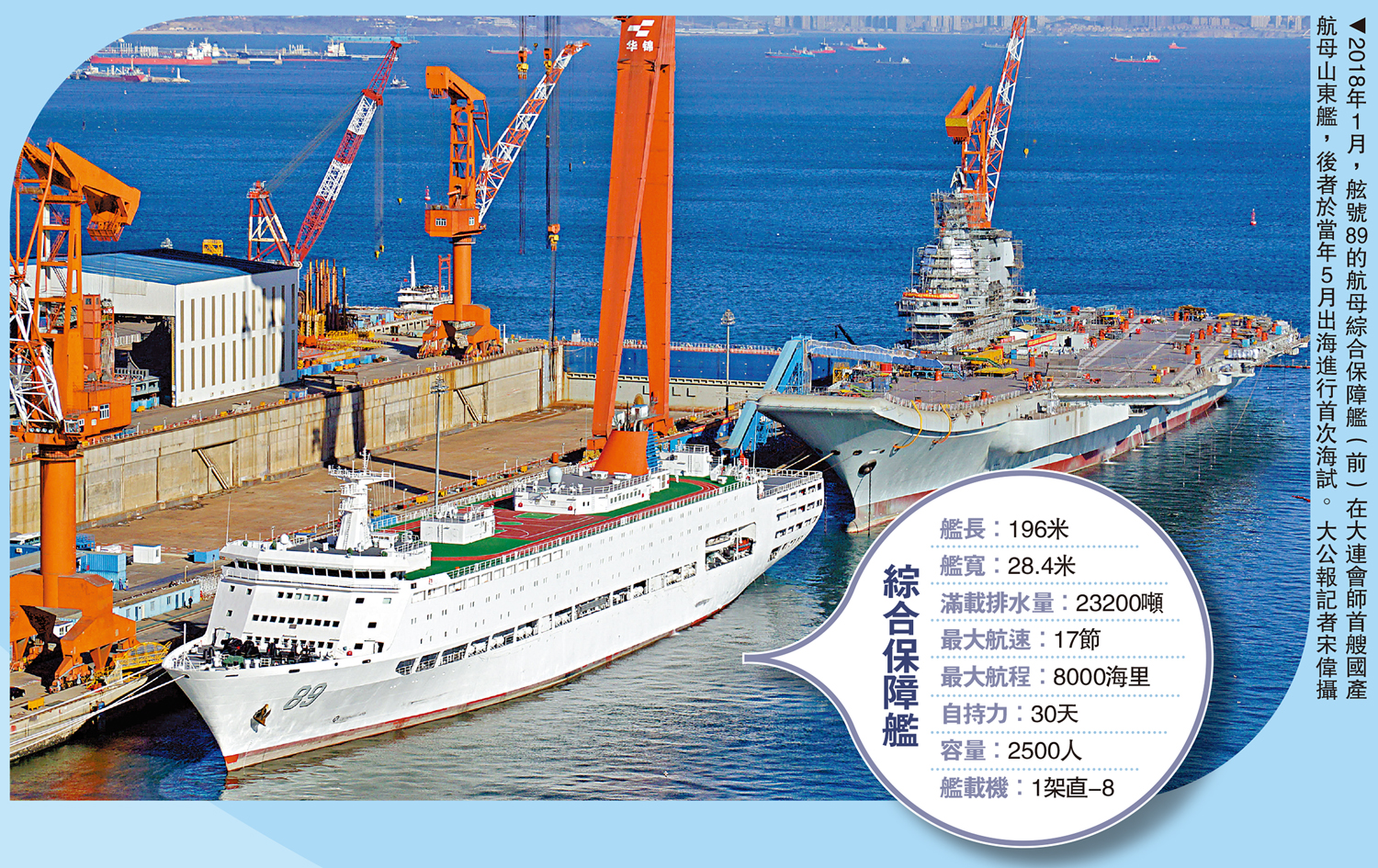 在福建艦泊位後方,日前悄然出現了一艘舷號89的軍艦。雖然與航母相比,其體型顯得瘦小,但實際上是一艘過萬噸級的巨艦。這就是航母訓練綜合保障艦酈道元艦。
