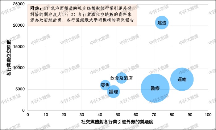 據中評社報道,香港面臨的人手緊缺問題日益顯現,社會各界開始聚焦討論輸入外勞的紓緩方案。中評智庫大數據中心透過綜合分析香港社交媒體的有關輿情數據以及各官方機構的統計數字得出結論:香港目前的確存在比較嚴重的「人手荒」情況,為抓住疫後的發展機遇盡快重振經濟,在短期內適當輸入外勞實屬無可厚非。希望特區政府能從長遠出發,切實改善部分「難請人」工種的行業生態,以及提升社會整體的勞動力供應。