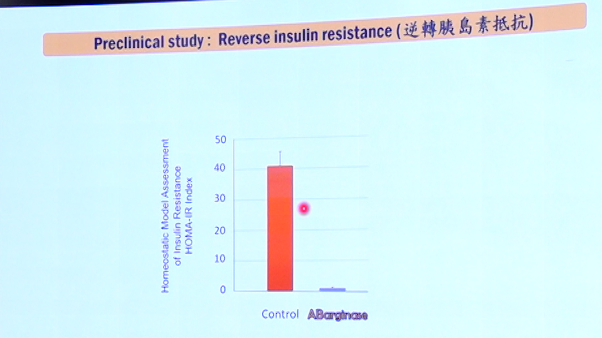 「『ABarginase』在臨床前研究的結果已經展現巨大潛力,可望為治療多種肥胖、胰島素抵抗、糖尿病等相關的代謝性疾病提供安全而有效的方案。我們相信已經研發出可以治癒這些相關疾病的單一藥物。」沈秀媛說。