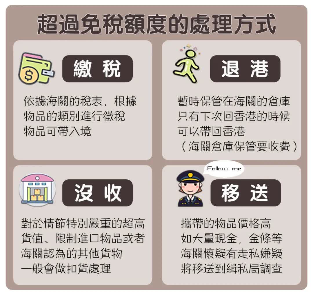 如果你在過關時不幸被查,購物額度超過稅額要進行查扣,會有幾種處理方式呢?