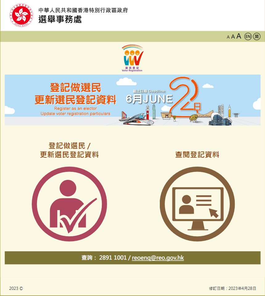 市民如就選民登記事宜有任何查詢,可登入選民登記網站或致電選舉事務處熱線(2891 1001)。