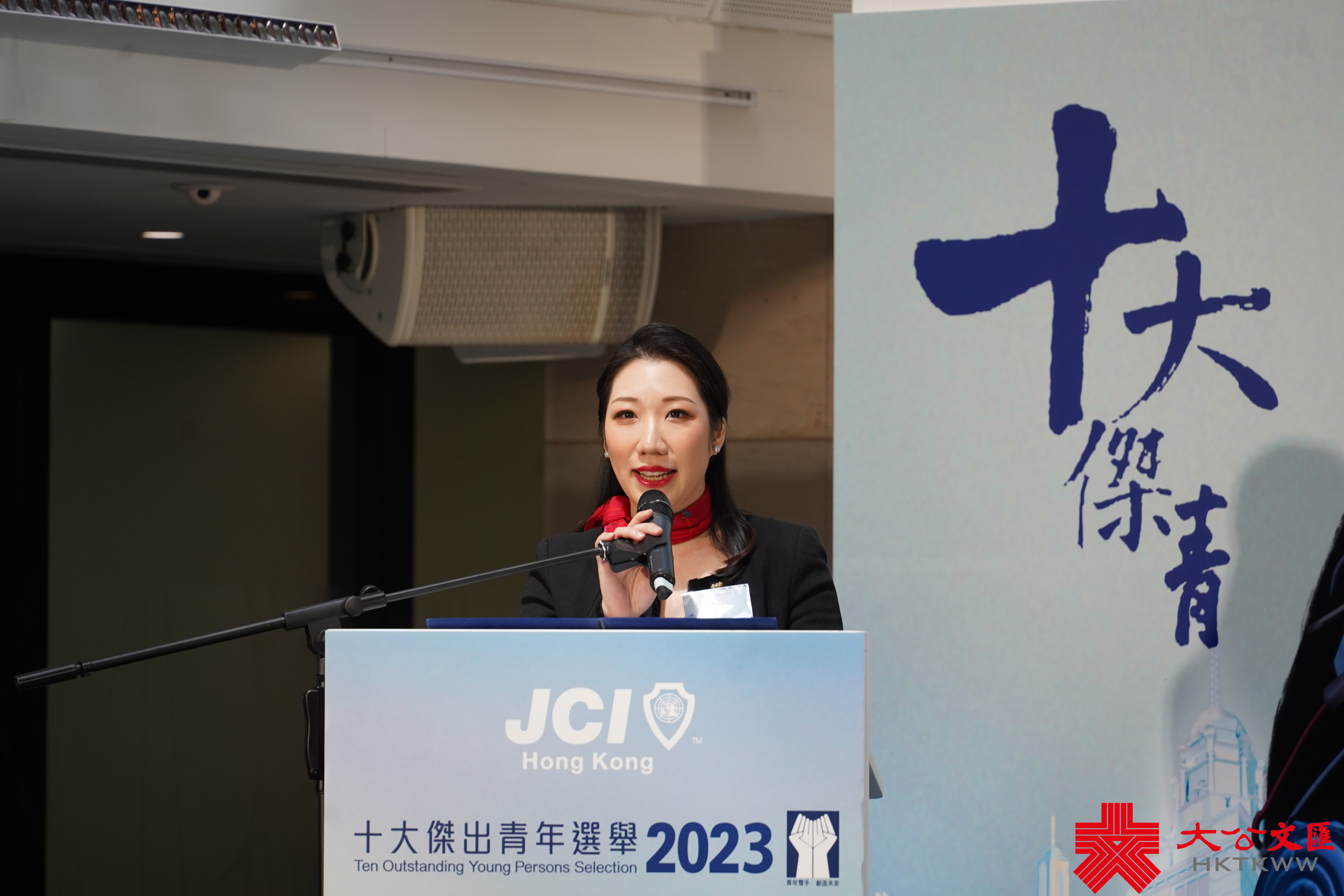 籌委會主席黃皓欣為來賓介紹活動詳情。她表示,市民可提名年齡介乎21至40歲的傑出青年參與選舉,初選面試將於7月11日至8月14日期間進行,初選結果將呈遞評審團作最後甄選面試,通過初選面試之參選人將接獲通知,獲邀出席2023年9月內舉行的最後甄選面試,預計10月8日公布結果,提名表格可於國際青年商會香港總會或德勤索取。