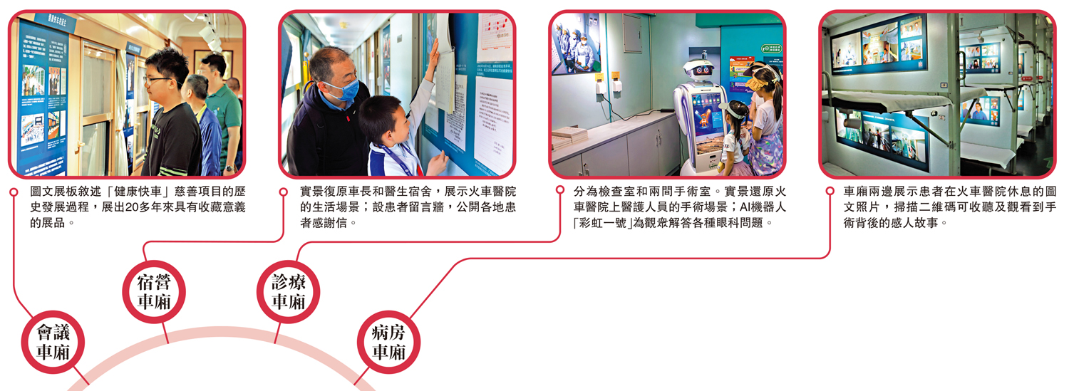 (大公報 記者 江鑫嫻)1997年7月1日,在香港回歸祖國的時刻,編號為G1997.7.1的「健康快車」—香港光明號火車醫院從香港啟程駛向安徽,開啟了光明之旅。「健康快車」是香港同胞送給內地同胞的禮物,旨在為欠發達地區需要幫扶的白內障患者提供免費復明手術。它將眼科手術室搬進火車車廂,配備一流的眼科醫護團隊和醫療設備,是中國第一列自主研發製造的火車醫院。26年來,「健康快車」已在內地28個省市累計為22萬餘名貧困患者免費實施了白內障手術治療。於2021年被中國鐵道博物館東郊館永久收藏的第一列「健康快車」變身火車醫院博物館,日前對公眾開放公益展覽,展現這列開往光明的列車滿載的愛與奉獻。