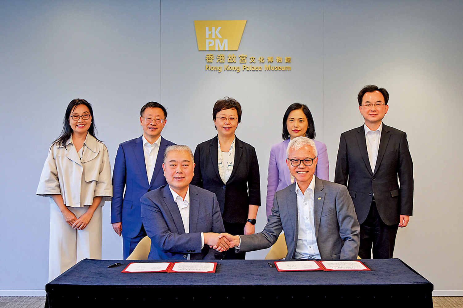 展覽意向合作協議在四川省委常委、宣傳部部長鄭莉,四川省文化和旅遊廳廳長戴允康,西九文化區管理局行政總裁馮程淑儀以及西九文化區管理局副行政總裁(區域發展)顏金施的見證下,由四川省文物考古研究院院長唐飛代表廣漢三星堆博物館、成都金沙遺址博物館、四川省文物考古研究院及成都文物考古研究院,與香港故宮文化博物館館長吳志華共同簽署。
