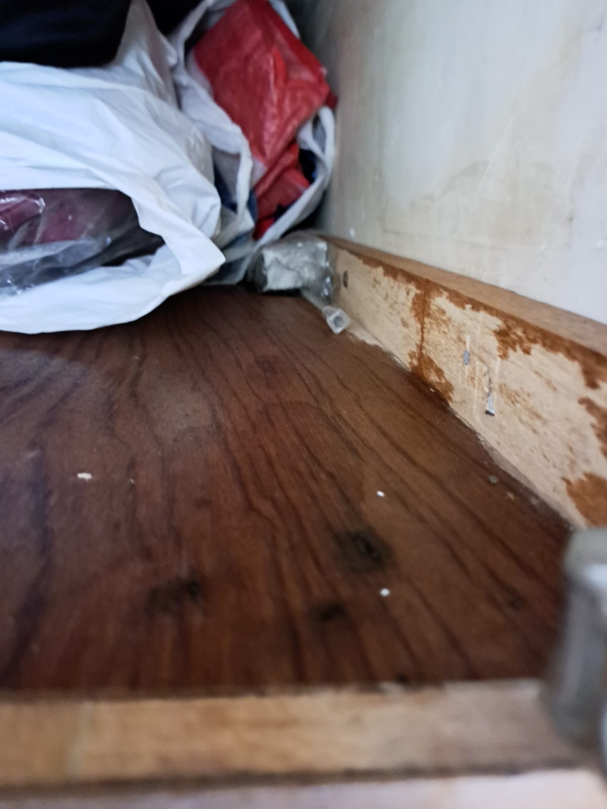 吳女士指,當時滲水辦曾派員到場進行檢驗,發現上面單位的確有滲漏情況,但上面單位戶主卻拒絕維修,後來滲水辦再到場檢查時,又指上面單位檢測濕度未達標,結果不了了之。事主苦無對策,曾找公證行進行檢驗,雖然公證行檢測證明樓上單位確有滲漏,並發出律師信要求對方賠償,可是同樣被對方以不同方法拒絕及拖延,結果情況拉鋸維持十年,事主更嘆言單位長期滲水,影響家居衞生,有時更會滲出難聞異味,更令她患有不同的長期病症。