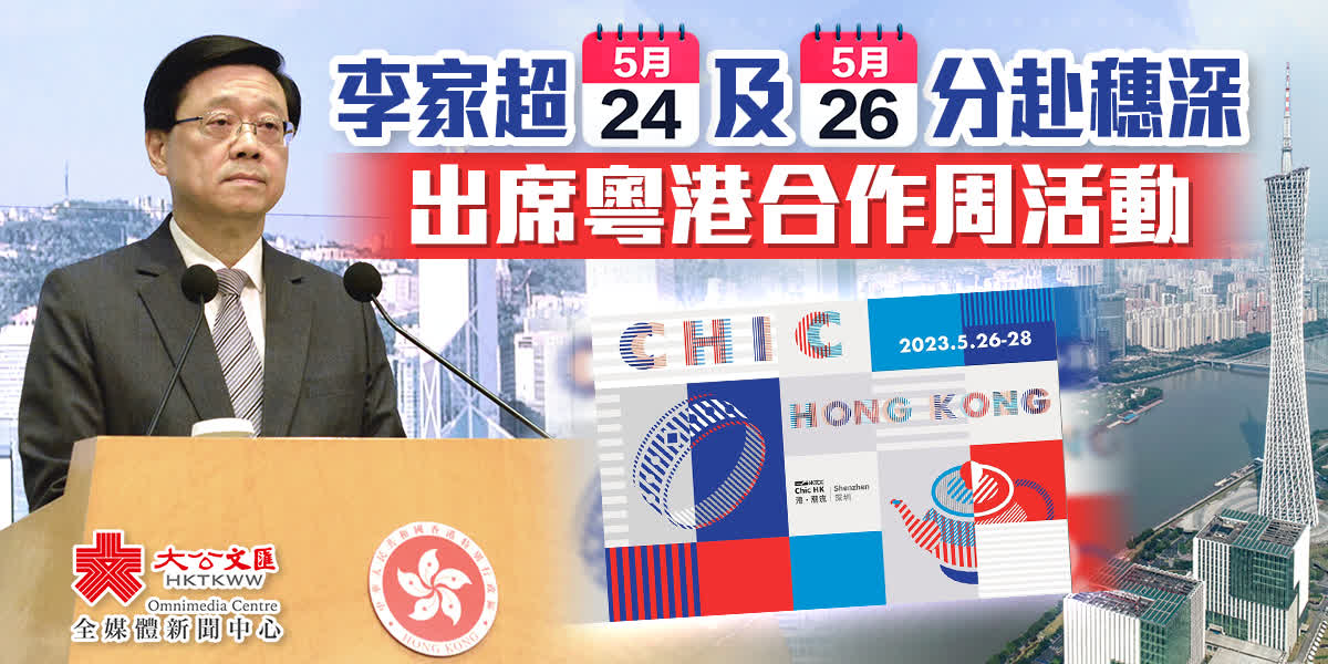 李家超指出,明日到廣州出席的是「粵港合作周」啟動儀式,其中「推動高質量發展·香港論壇」(SmartHK)以「粵港聯動推動高質量發展」為題,就聯動香港專業服務、推進粵港澳大灣區高質量發展進行討論;星期五到深圳出席的是「粵港合作周」旗艦活動「港·潮流」開幕式,幫助港商開拓內地龐大市場。