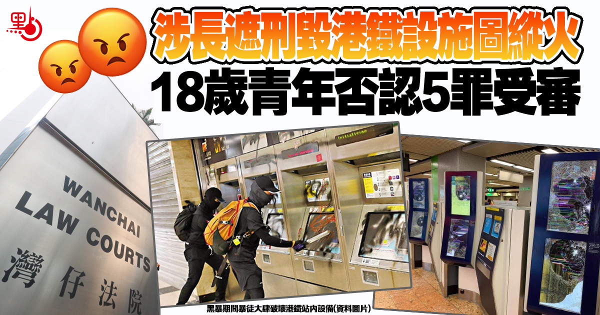 大公文匯全媒體報道:18歲青年在2020年7月1日涉嫌以雨傘破壞港鐵設施及企圖在馬路上燃點紙箱,他否認企圖縱火、刑事損壞等共5罪,案件昨在區域法院開審。控方開案陳詞稱,被告和他人嘗試用兩傘破壞閉路電視鏡頭和電子顯示屏,但不成功,後改為破壞天花板的四條光管,造成6,240元損失。