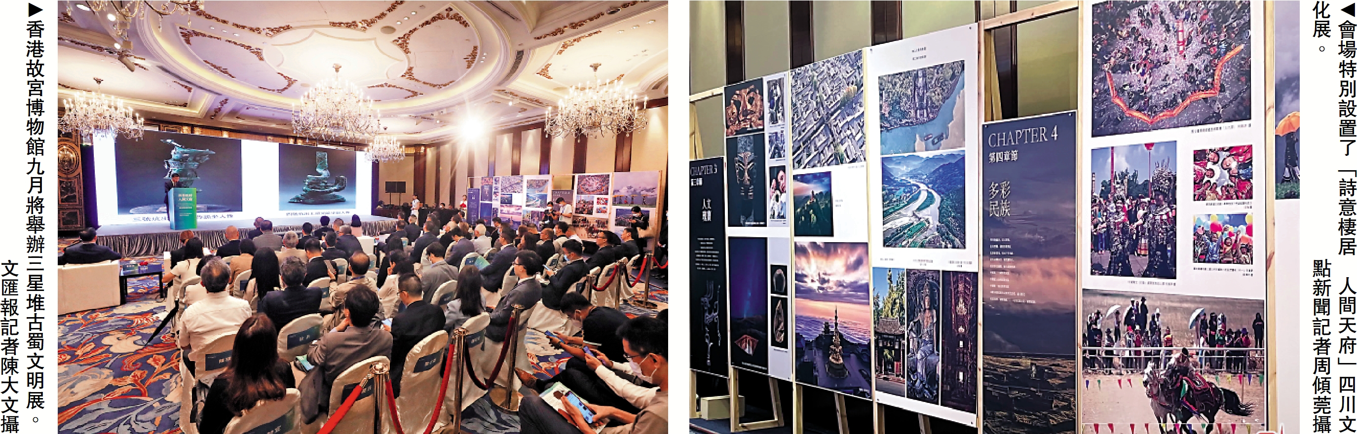 2023年是「川港合作會議」機制建立五周年,四川省人民政府新聞辦公室昨日在港舉辦四川形象推介會。會上介紹,在香港中聯辦的指導下,四川正推動「香港+四川」文化交流活動。其中定於今年9月在香港故宮文化博物館舉辦三星堆和金沙文物展,將展出120件三星堆珍貴文物,展期約四個月。重點展品包括三星堆遺址出土、距今3000至3200年的各類青銅面具、青銅人像和黃金面具,以及距今3000多年的玉鉞等珍貴文物。其餘的川港文化數字產業投資合作推介會、川燈耀香江─天府大廟會等活動也將陸續舉行。