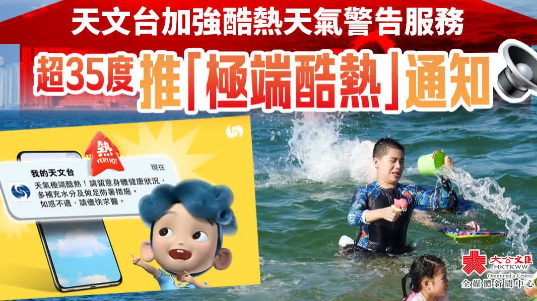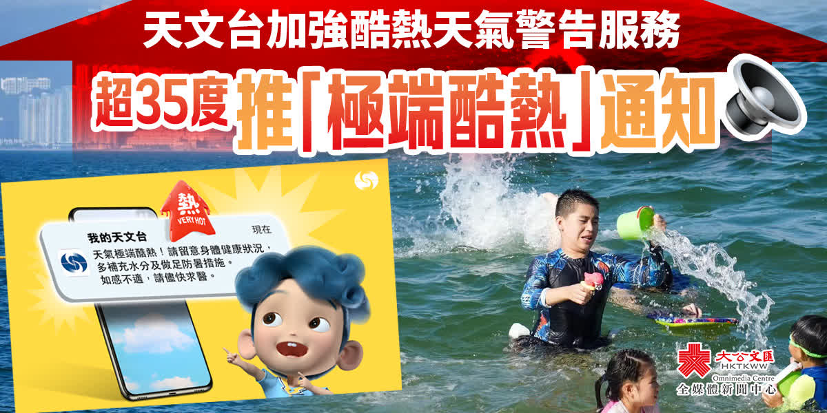 大公文匯全媒體報道,天文台即日起加強酷熱天氣警告服務,當酷熱天氣警告生效時,如果氣溫達到攝氏35度或以上,會透過應用程式發出特別天氣提示。