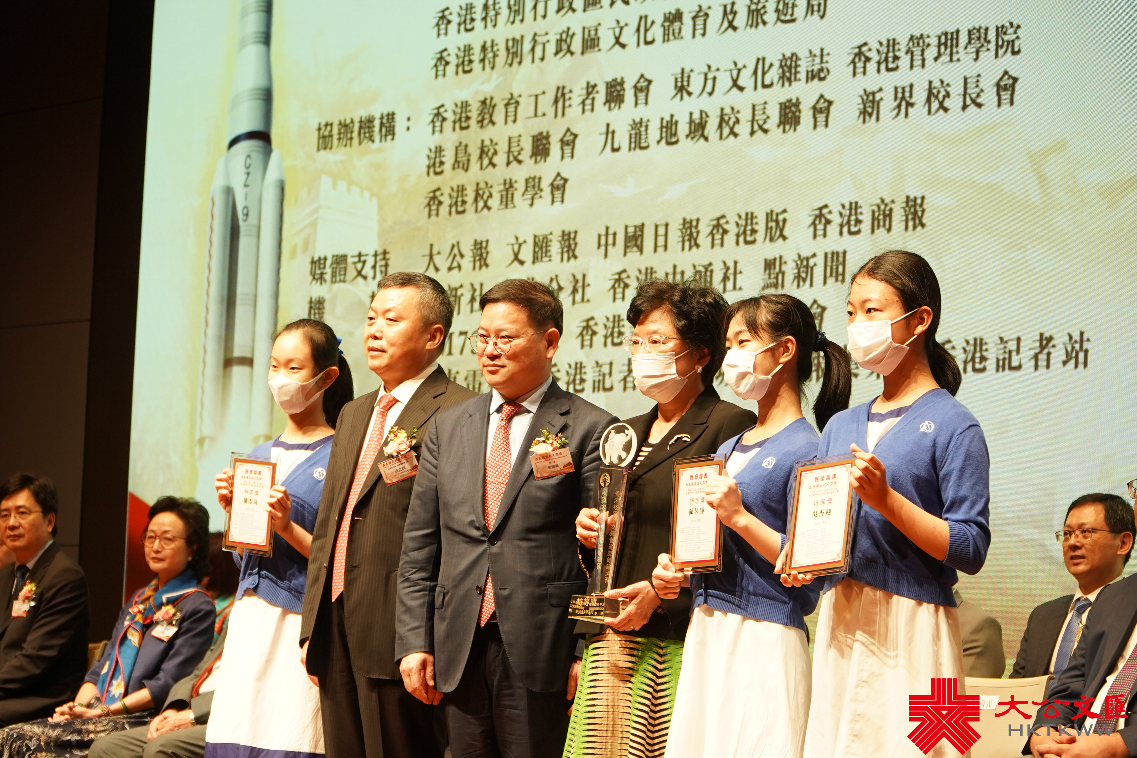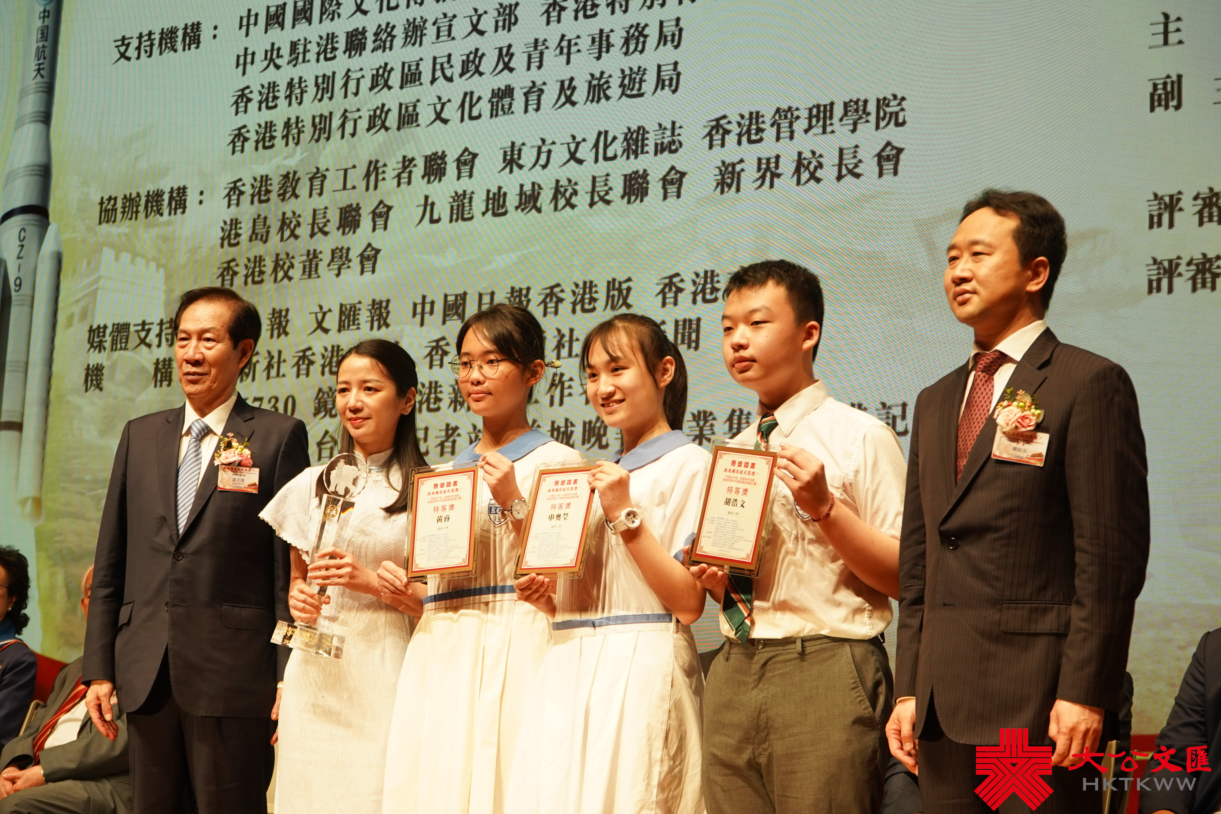 隨後舉行的頒獎典禮,邀請中聯辦宣文部副部長張國義、民政及青年事務局副局長梁宏正、中國太平保險集團監事長周立群、中國國際文化傳播中心執行主席龍宇翔,及全國僑聯副主席、中國和平統一促進會香港總會理事長盧文端、香港大公文匯傳媒集團執行總經理韓紀文,香港立法會議員、香港教育工作者聯會會長劉智鵬教授,組委會副主席、香港立法會議員陳沛良、香港大公文匯全媒體新聞中心總編輯黃曉敏等作為主禮嘉賓出席儀式。