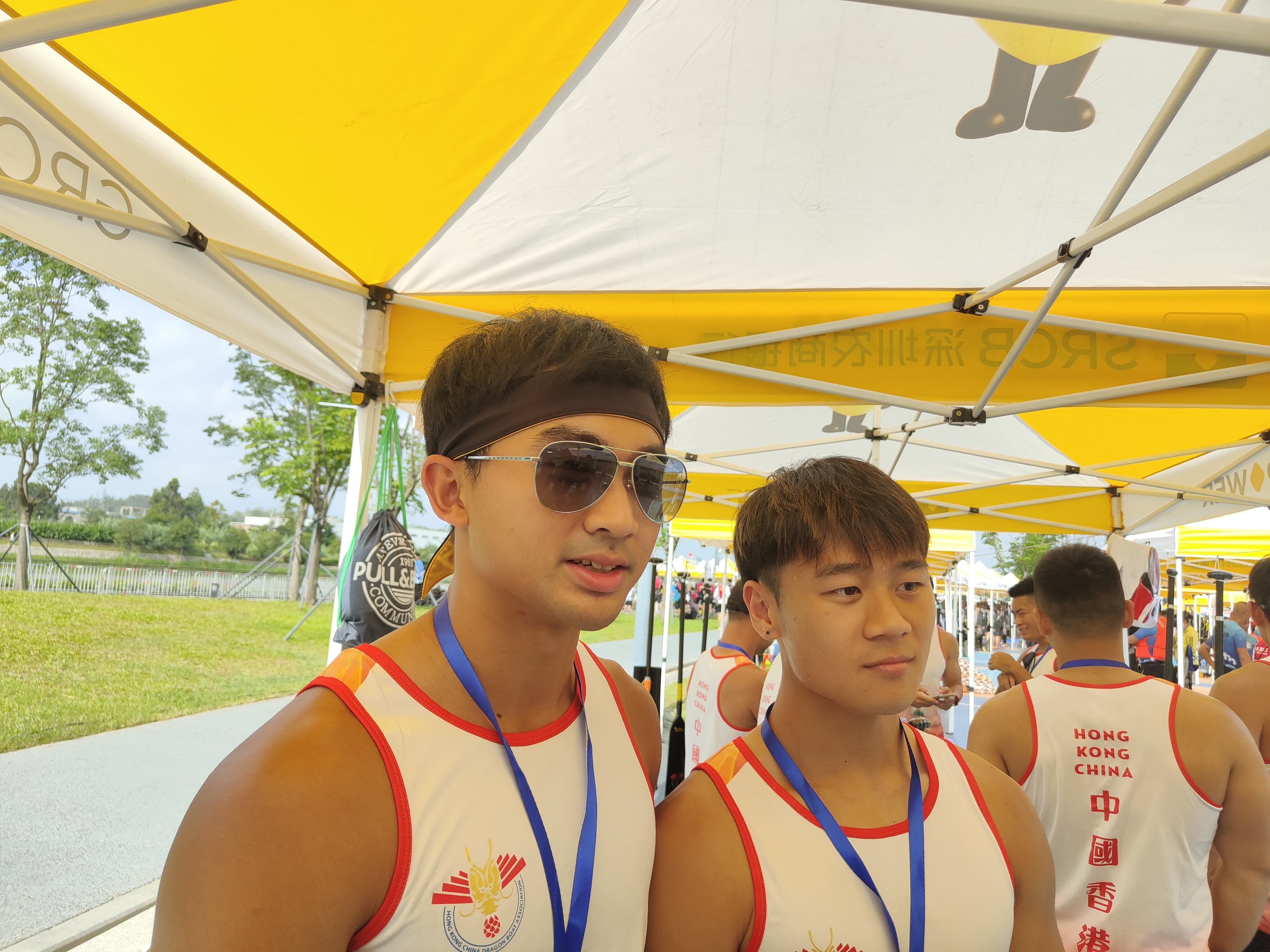 中國香港男子龍舟代表隊隊員姜梓樂、鄧淏聰均是第一次到寶安,在接受記者採訪採訪時,兩人都頗為興奮,稱讚賽道專業,比平時訓練的還要好,四周的環境也很優美。「因為疫情幾年沒有比賽,這次非常榮幸能收到深圳的邀請,第一次來這裏非常興奮,主辦方後勤保障也都安排的非常好,賽前做了熱身練習,平時在香港每天也都會做練習。」