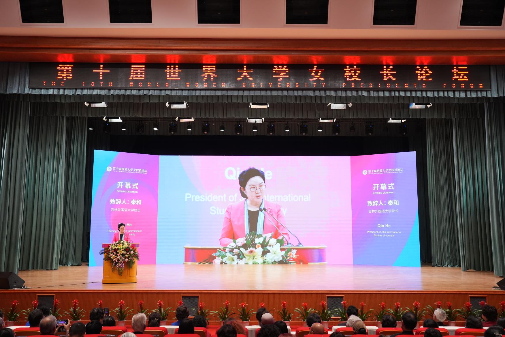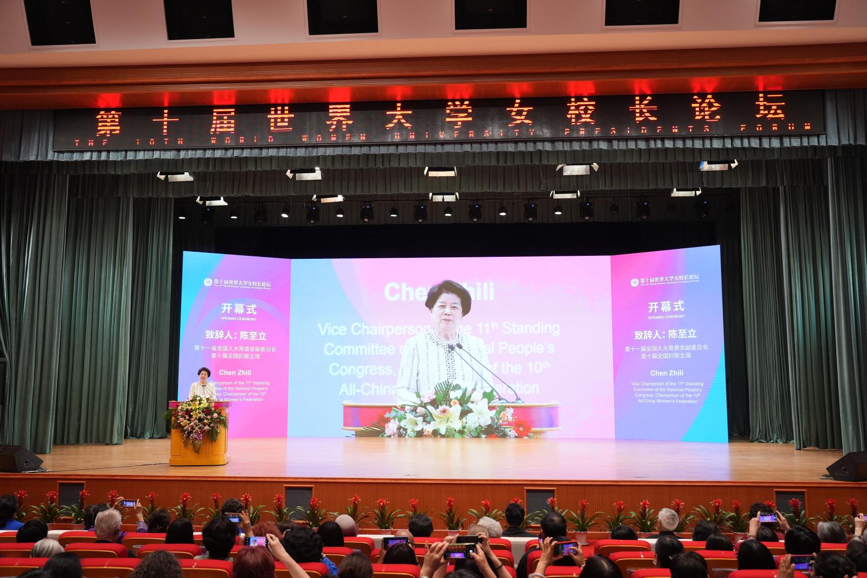 第十一屆全國人大常委會副委員長、第十屆全國婦聯主席陳至立,聯合國教科文組織原總幹事伊琳娜·博科娃,教育部原副部長李衛紅,世界大學校長聯合會主席、墨西哥賽提斯大學校長費爾南多·加西爾,全國婦聯副主席、書記處書記吳海鷹,歐洲大學女校長協會主席居爾松·薩拉莫,吉林省副省長梁仁哲等領導嘉賓在開幕式致辭,祝賀論壇召開。