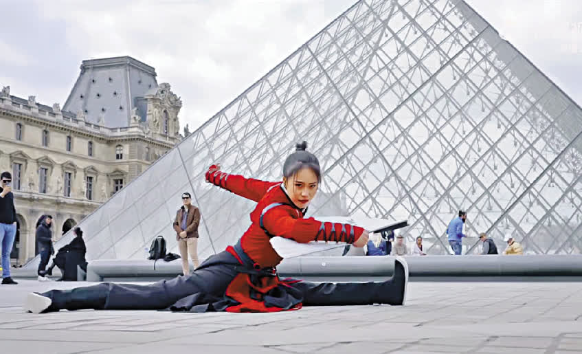 (大公報記者 向芸)2020年,在自家樓下扔完垃圾後一個乾淨利落的空翻、一套行雲流水的舞劍,讓來自四川的武術女孩凌雲被網友稱讚為「峨眉女俠」;三年後,在距離中國萬餘公里的法國巴黎埃菲爾鐵塔下,凌雲與古箏博主「碰碰彭碰彭」、國風導演「斜槓玩家吉叔」合作拍攝視頻,以武術聯動民族樂器,讓兩抹「中國紅」點燃海內外。「女孩子會中國功夫這件事情還是蠻帥的。」三年時間,作為峨眉武術非遺傳承人和峨眉武術宣傳者,這個「95後」女孩大膽跨界,在互聯網上以峨眉武術「對話」世界,「希望能通過我的努力,讓更多年輕人能關注並且喜歡上中國武術。」