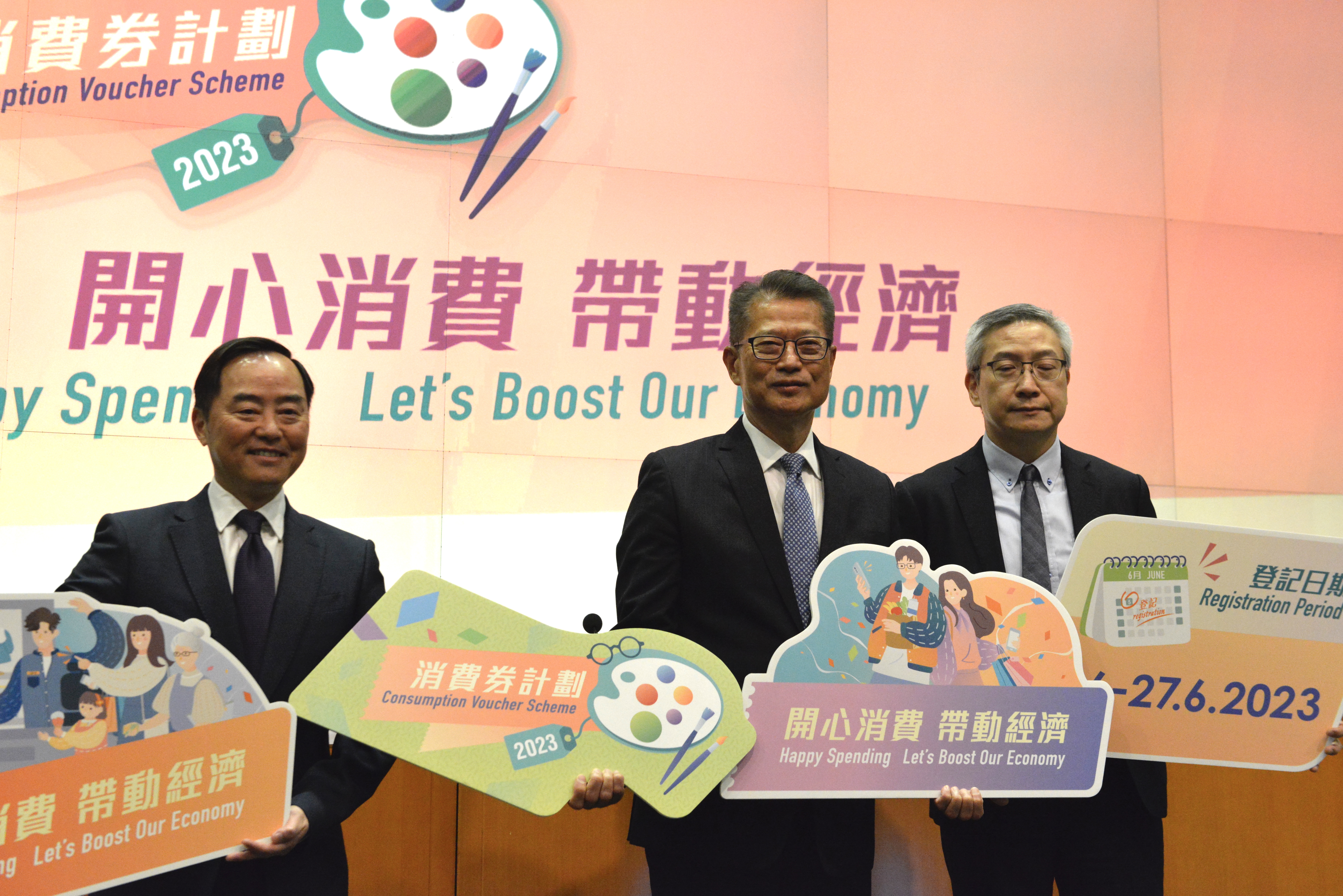 政府資訊科技總監黃志光及財經事務及庫務局首席助理秘書長(庫務)莊國民亦出席記者會,介紹相關消費券計劃的詳情。