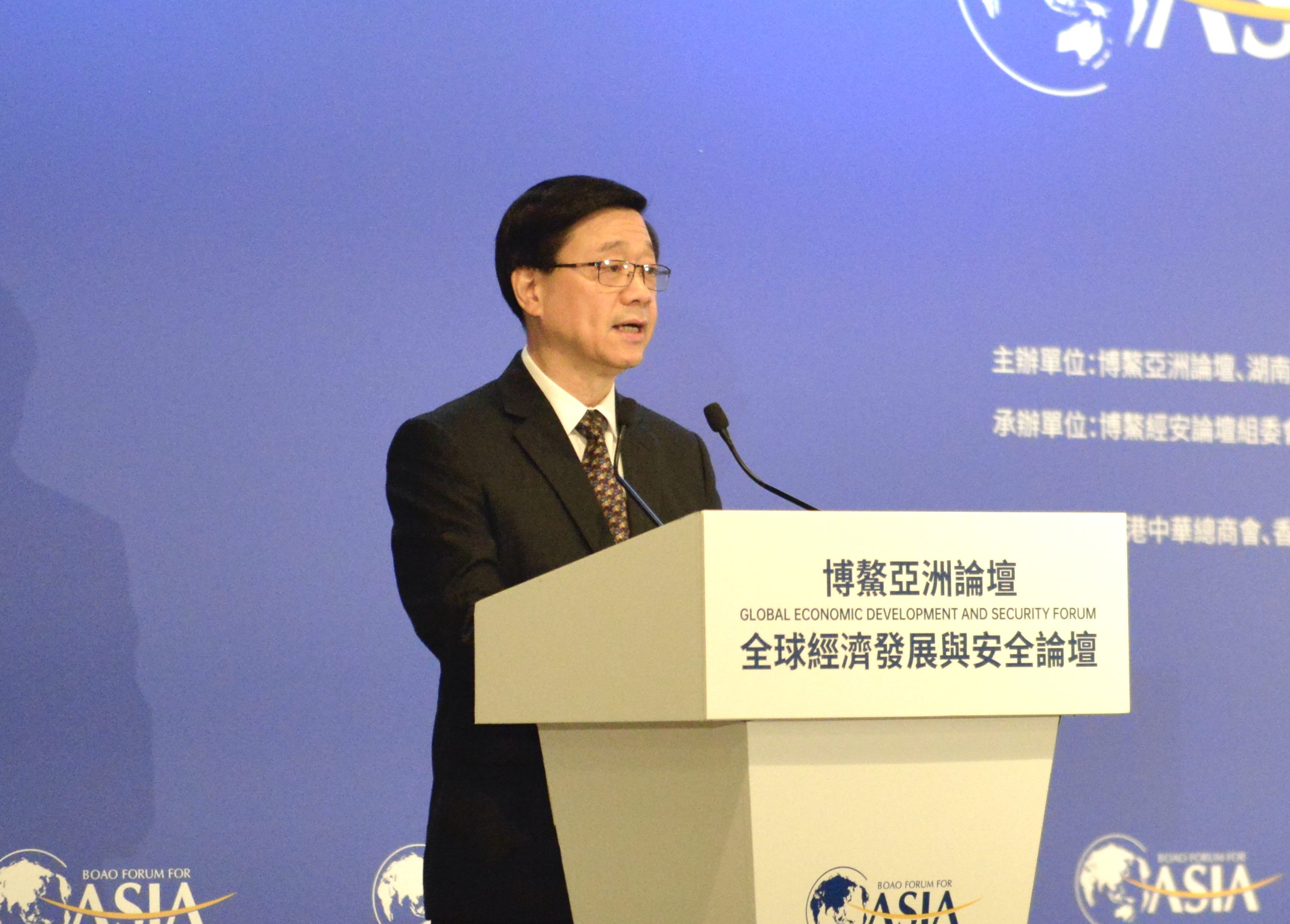 李家超在致辭中強調了人類命運共同體理念,全球發展倡議和全球安全倡議,肯定了香港特區和博鰲經安論壇對發展與安全這兩個全球關注議題的高度重視。李家超指出,香港作為國家的一部分,地球村的一分子,必須不斷發揮「一國兩制」下背靠祖國、聯通世界的得天獨厚優勢,走好國際化路線,全力拚經濟、拚發展、拚競爭力,為建設美好香港、為共建人類命運共同體作出貢獻。