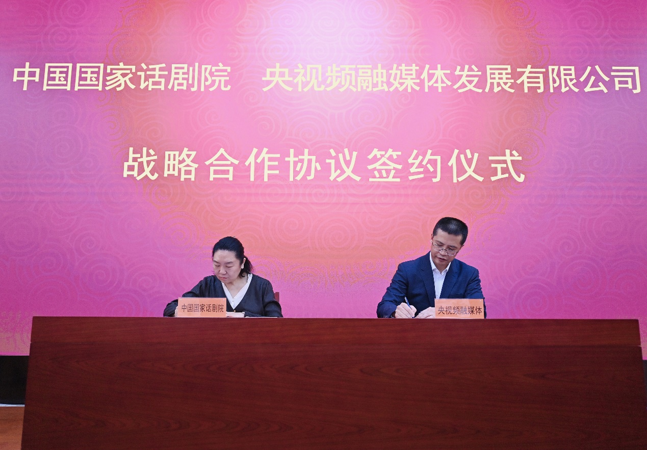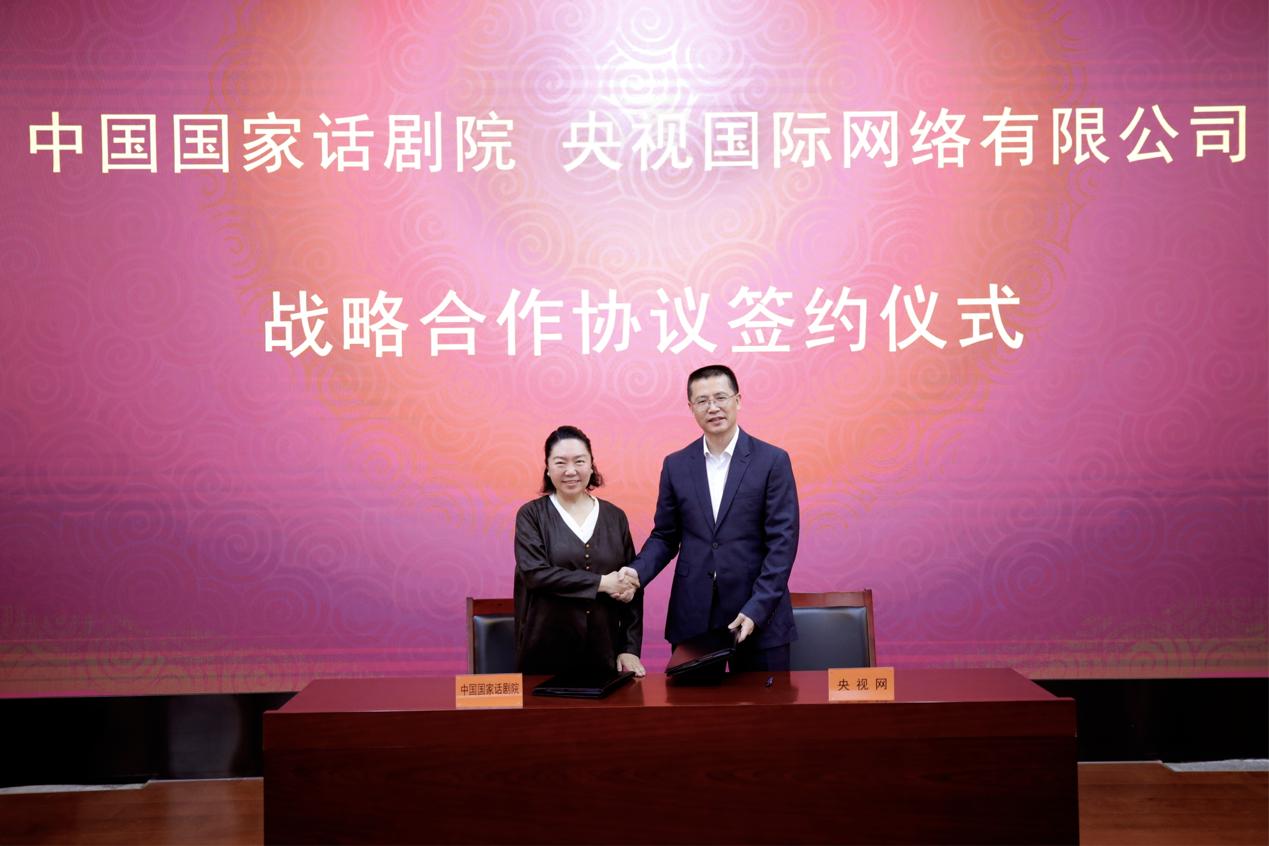 2023年5月31日上午,中央廣播電視總台央視國際網絡有限公司、央視頻融媒體發展有限公司與中國國家話劇院簽署戰略合作框架協議,全國政協常委、中國國家話劇院院長田沁鑫和央視網黨委書記兼董事長、央視頻融媒體發展有限公司總經理過彤作為代表上台簽約。文旅部辦公廳副主任張雪超、文旅部新聞宣傳處處長高波、中國國家話劇院黨委書記鞏保江、中國國家話劇院黨委副書記聞國久、央視網總經理王冰松、央視網副總經理魏驅虎、央視網副總編輯及光華創想總經理唐曉艷、央視頻公司副總經理那珂嘉、央視頻公司副總經理韓嫕、央視創造傳媒常務副總經理左興、央視娛樂傳媒常務副總經理董浩珉等出席儀式。此次文藝「國家隊」與媒體「國家隊」攜手並進、強強聯合,也是雙方創新合作模式,落實黨中央精神、助力國家文化數字化戰略、推進社會主義文化強國建設的具體舉措。