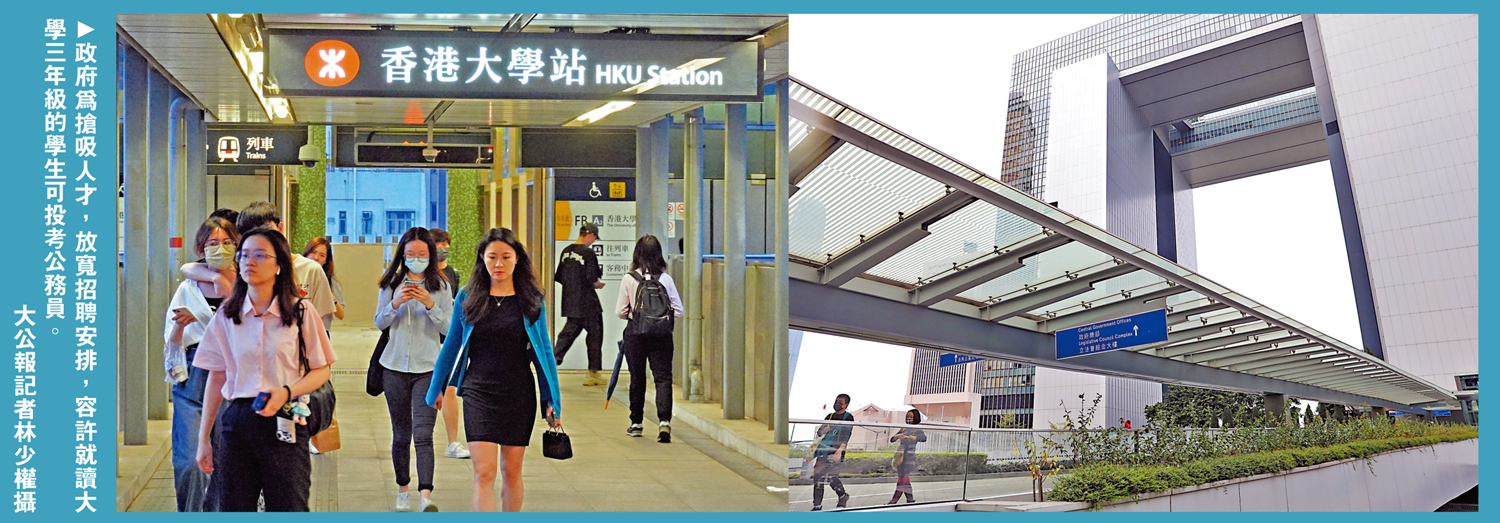 (大公報 記者 伍軒沛)特區政府不拘一格,以新思維搶人才!公務員事務局宣布調整大學生投考公務員要求,所有職系包括政務主任(AO)都容許就讀大三的學生投考公務員,明年及2025年畢業的大學生均可申請,但申請者要符合特定條件,包括在指明時間內完成學業,受聘時必須為香港永久居民。換言之「港漂」亦可投考,但入職時須取得永久居民資格。