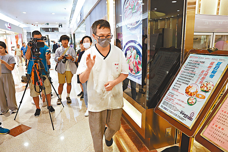 原來這名「雙凳男」就是在3樓一間酒樓任職廚師的輝哥,就是他舉起一張凳拍向兇徒頭部,令兇徒未有再傷及其他無辜。