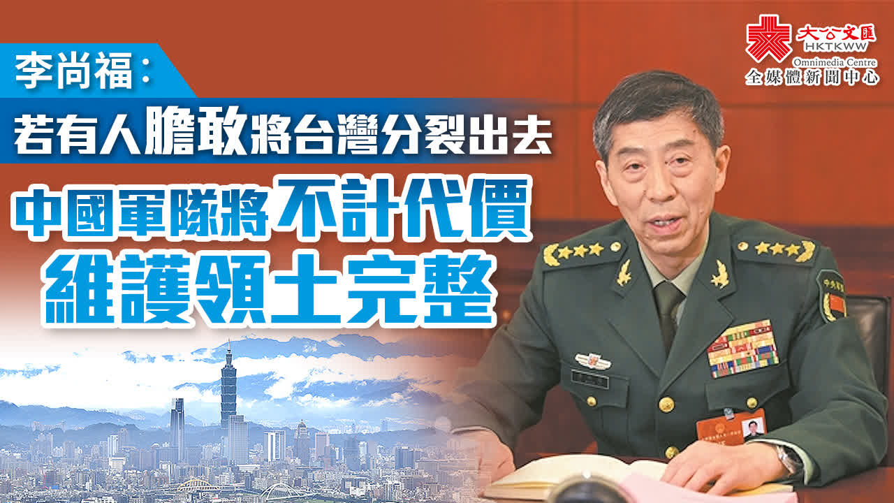 李尚福強調,台灣是中國的台灣,怎麼解決台灣問題是中國人自己的事,不容任何外部勢力插手干涉。民進黨當局「挾洋謀獨」、外部勢力「以台制華」,是改變台海現狀的最大麻煩製造者。如果有人膽敢把台灣從中國分裂出去,中國軍隊不會有絲毫遲疑,不畏懼任何對手,不管付出多大代價,都將堅決維護國家主權和領土完整。