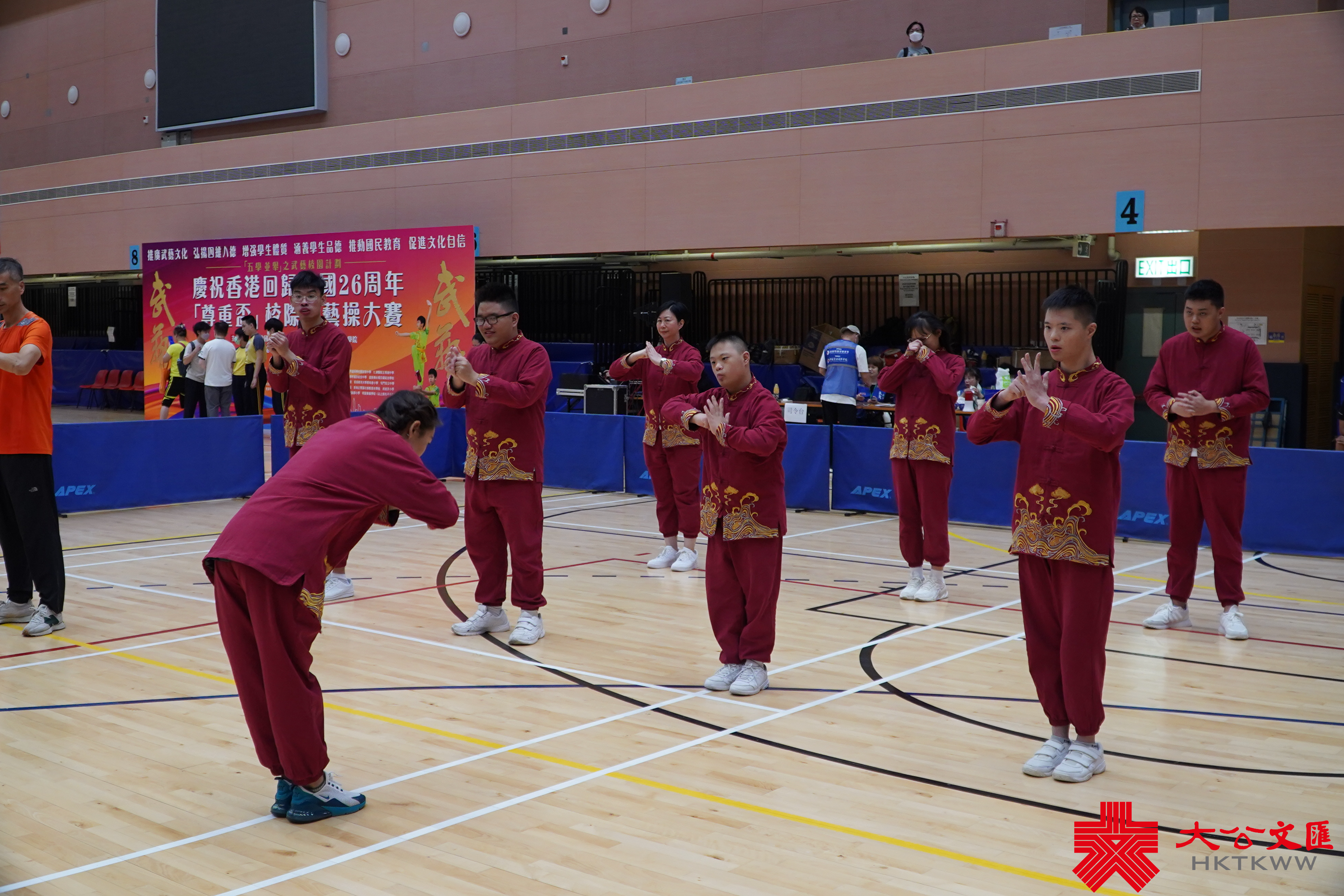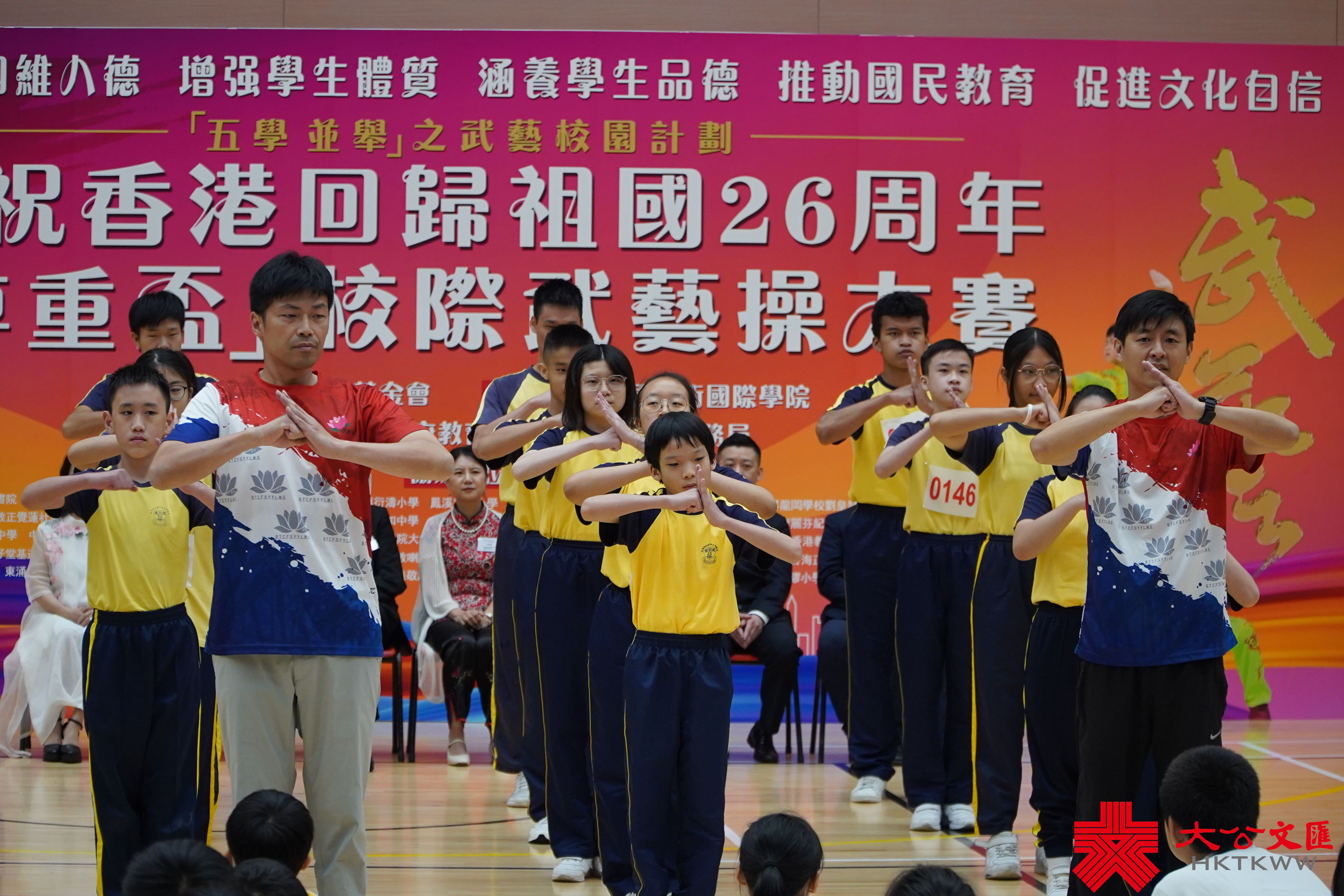 大公文匯全媒體報道,為體現文化自信、增強國家認同感,把香港新一代學生的身爲堂堂正正中國人的精、氣、神在慶回歸之日獻給國家,「慶祝香港回歸祖國26周年『尊重盃』校際武藝操大賽」今日(4日)假中山紀念公園體育館舉行。大賽由馮燊均國學基金會主辦、中國武術國際學院承辦,賽事首創香港校際武藝操賽事的先河。