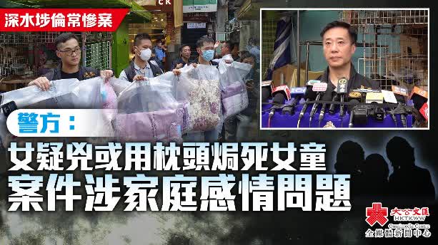 鍾雅倫指出,經過初步檢驗,3名女童沒有表面傷痕,現場尋獲沒有利器或藥物等。警方經過調查指,女童母親不排除用枕頭親手將3個女兒焗死。女疑兇隨後致電其母親告訴自己殺人,其母親讓女疑兇弟弟報案。