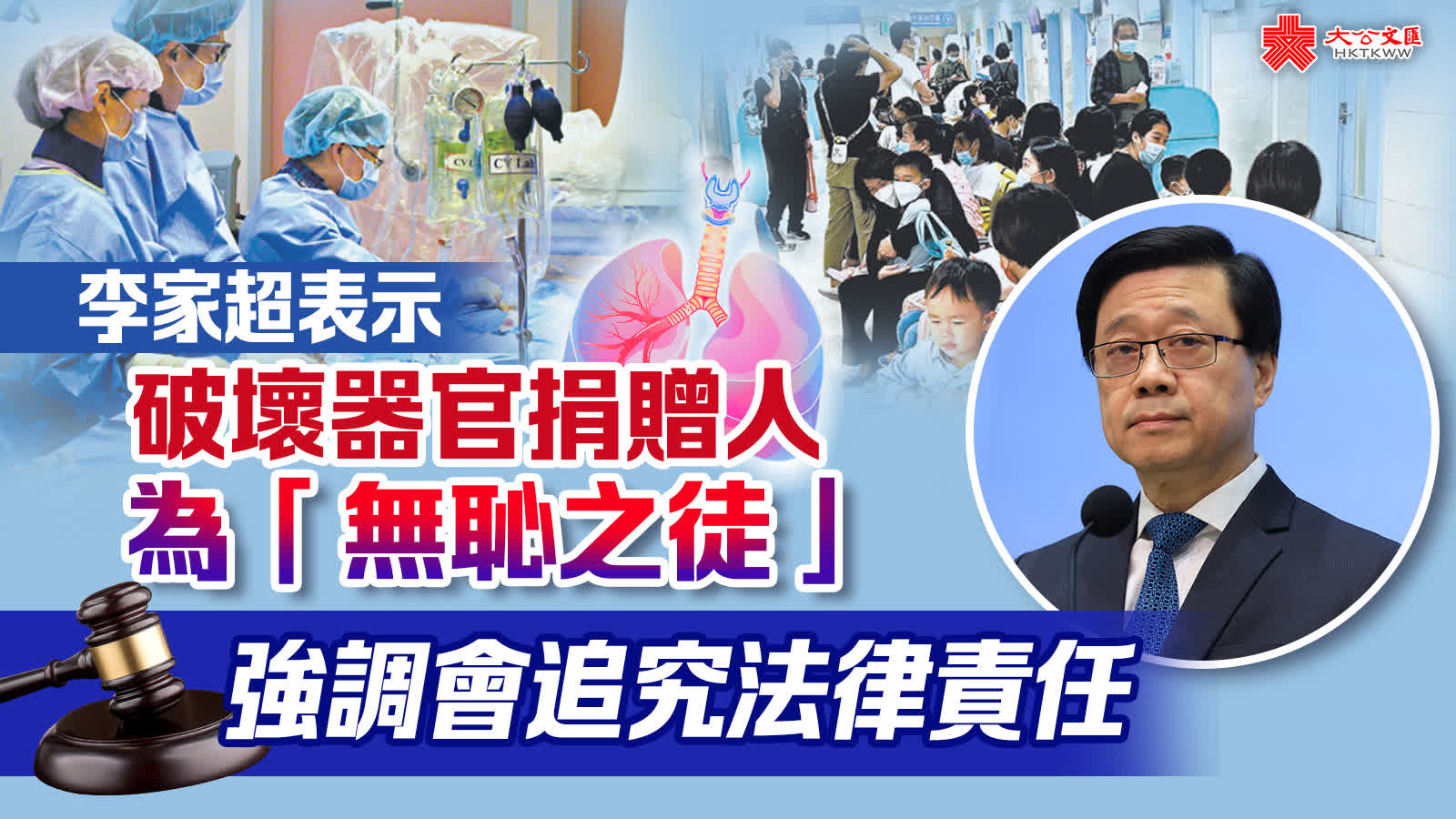 大公文匯全媒體報道,行政長官李家超今日(6日)出席行政會議前見記者。對於近日有不法分子涉嫌盜用他人資料,於器官捐贈登記系統上作不實申請,李家超表示,此乃「卑劣行為」,政府一直關注有人蓄意破壞器官捐贈這個崇高理念計劃,事件當中涉及個別「無恥之徒」,不誠實製造大量取消器官捐贈登記的假象,製造破壞器官捐贈救人計劃這個神聖的精神。