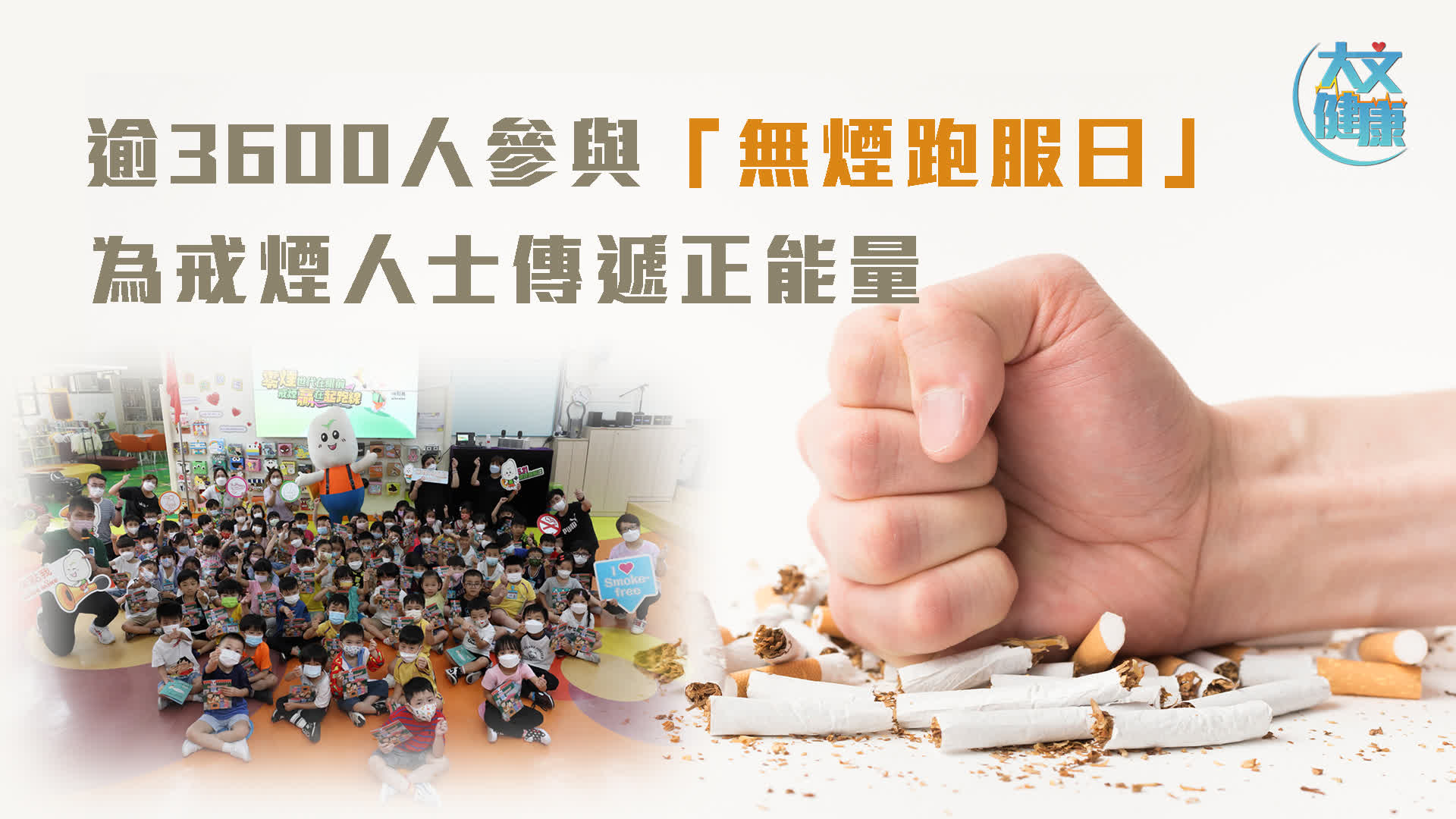 世界衞生組織將每年 5 月 31 日定為「世界無煙日」,旨在提高全球對煙草禍害的關注。今年香港吸煙與健康委員會(「委員會」)以「零煙世代在眼前 戒煙贏在起跑線」為主題,連續第三年舉辦「無煙跑服日」,在一眾機構及學校支持下,共吸引逾 3,600 人於「世界無煙日」(5 月 31 日)響應穿上跑服或運動服,藉此推動吸煙人士以 運動起步戒掉煙癮,提高戒煙的成功率。