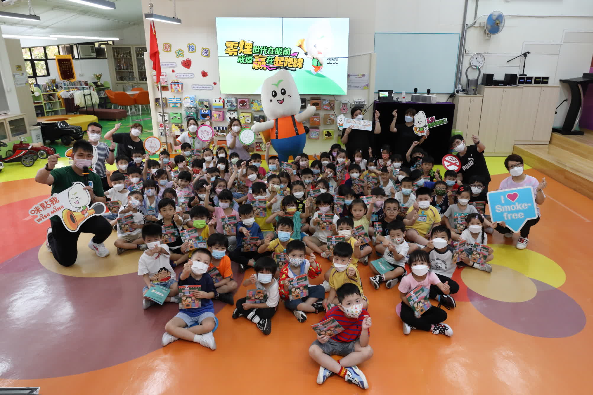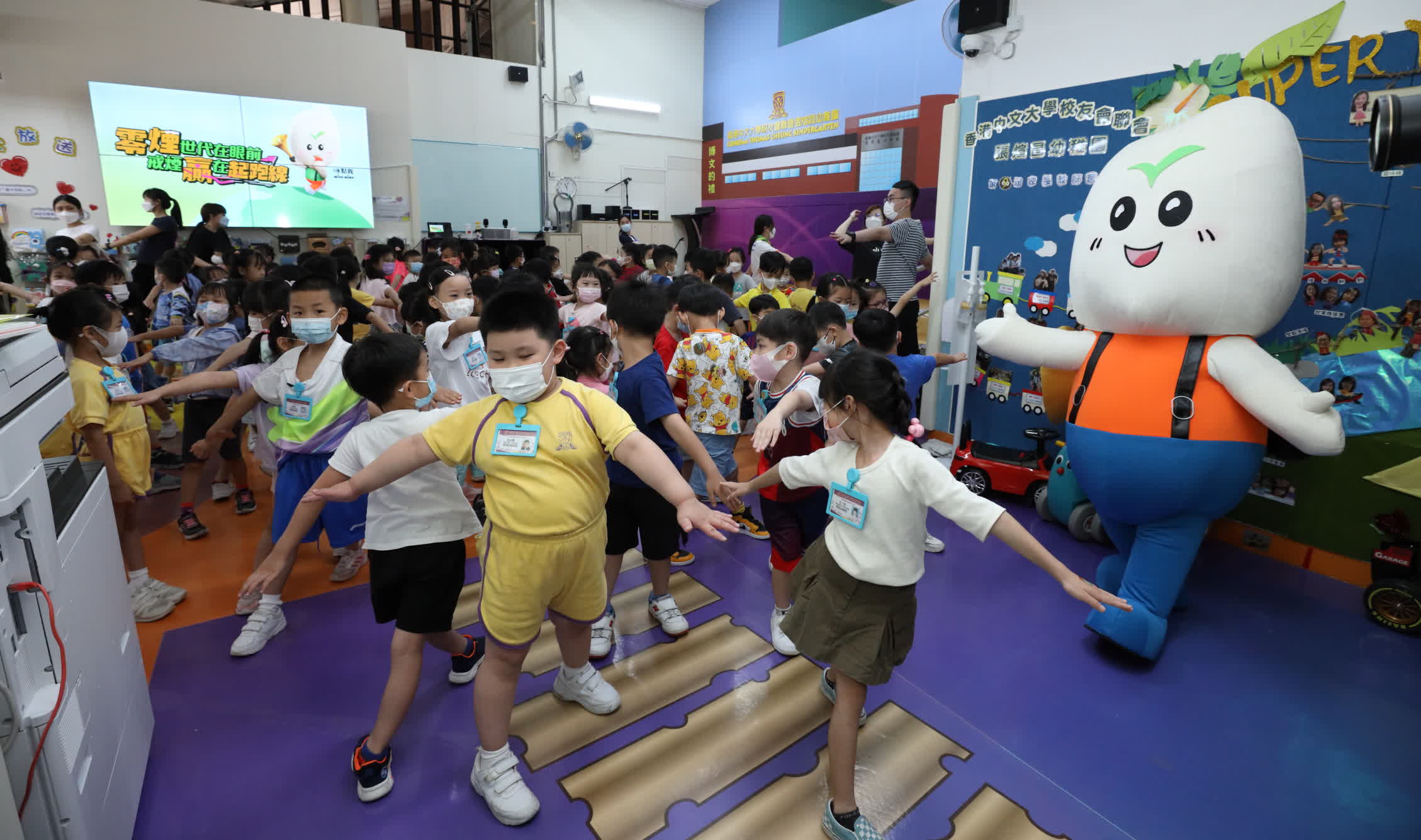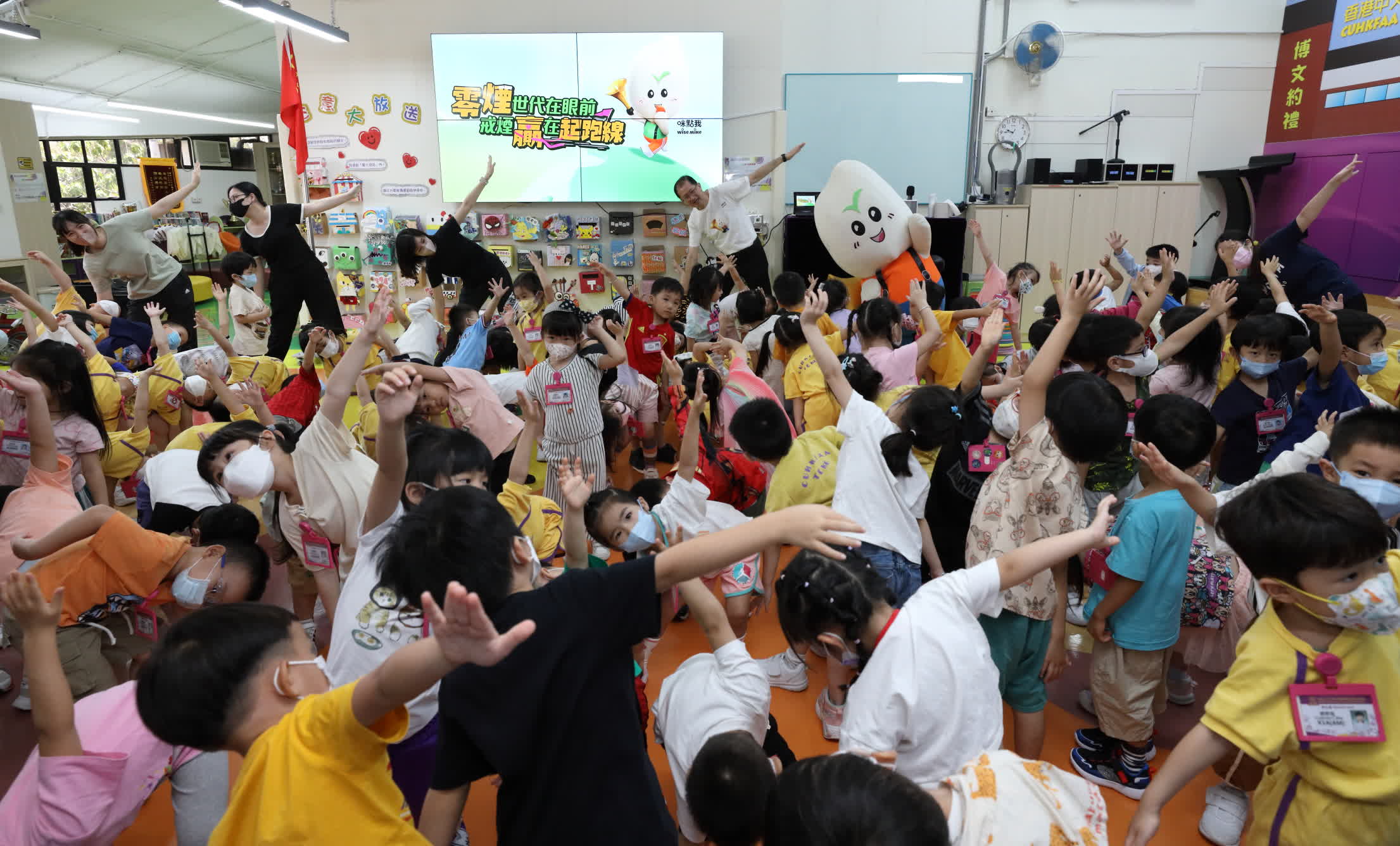 無煙代言人「咪點我」亦於現場帶領幼稚園學生學習做伸展運動,推動他們身體力行建立健康的生活習慣。它亦不忘提醒學生吸煙會產生二手煙,傷害身邊的人,只有吸煙人士徹底戒煙,才能遠離煙害。