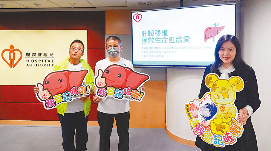 香港醫管局昨日舉行以「肝臟移植,拯救生命延續愛」為題的記者會,講解本港肝臟移植手術的情況及器官捐贈的意義。
