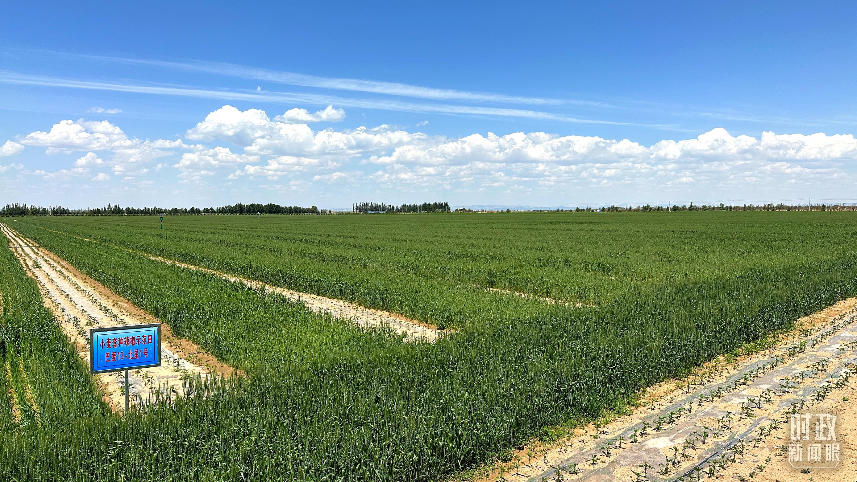 這片示範園區核心區面積近4000畝,主要開展鹽鹼沙荒地改良改造和綜合利用,種植的品種有玉米、木耳、葫蘆、小麥套種辣椒等。