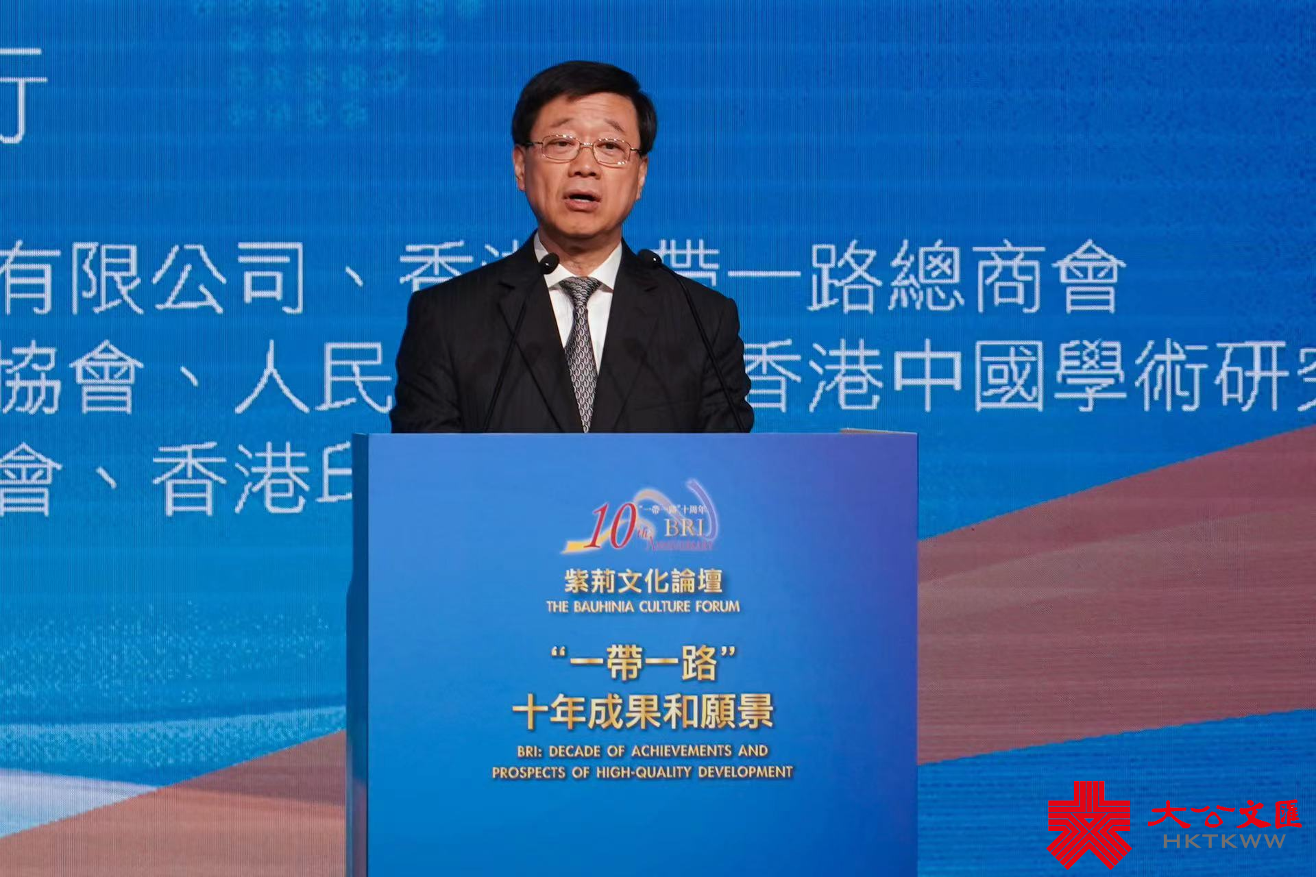 李家超致辭時表示,隨着疫情的緩解和世界基本恢復正常,「一帶一路」的前景更加光明。對香港來說更是一個好消息,因為香港是「一帶一路」的樞紐。除了是金融中心,香港擁有世界一流的專業服務,亦是一個天然的橋樑,從這裏擴展到整個亞洲地區和世界其他地區的繁榮市場。