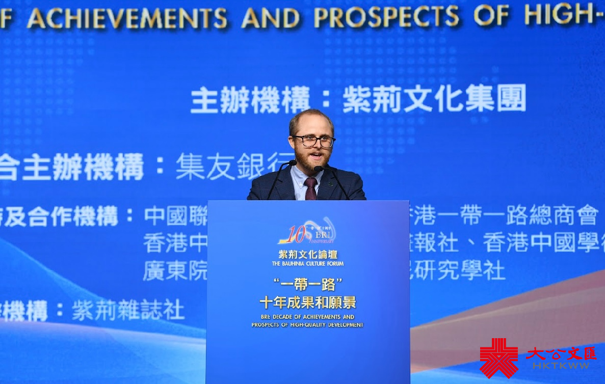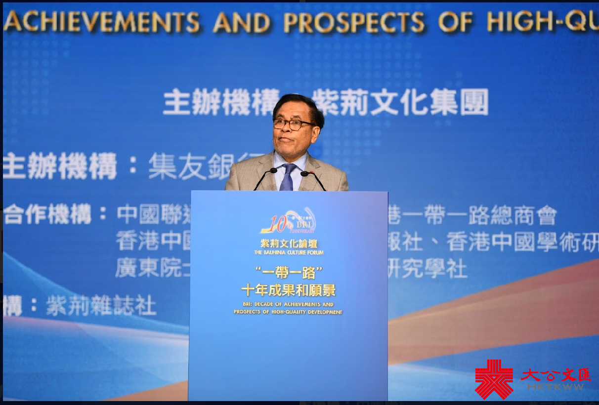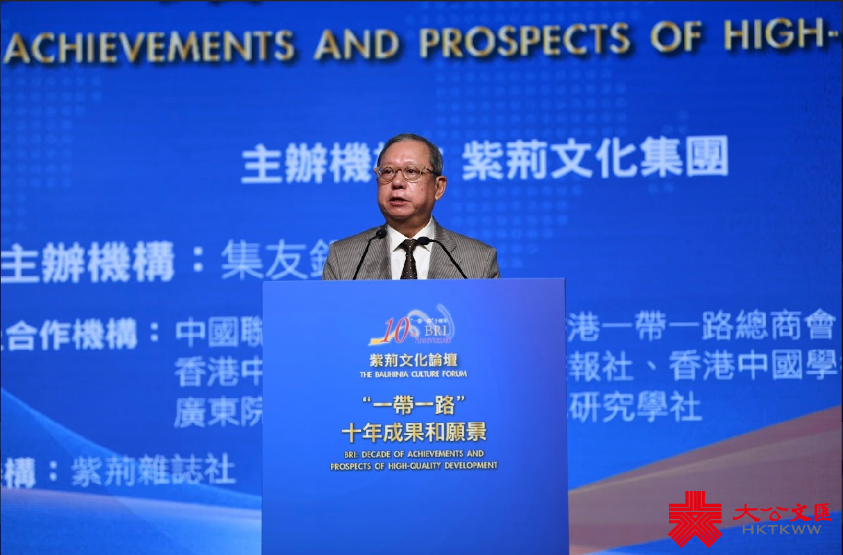 (大公文匯全媒體記者 周傾芫)「一帶一路」十年成果和願景——紫荊文化論壇在今日(7日)舉行。論壇共邀請了來自美國、英國、哈薩克斯坦、阿聯酋、馬來西亞、塞爾維亞、印度尼西亞和中國香港等地的16位國際知名專家學者及政商領袖,現場回顧總結「一帶一路」十周年的成就和經驗。
