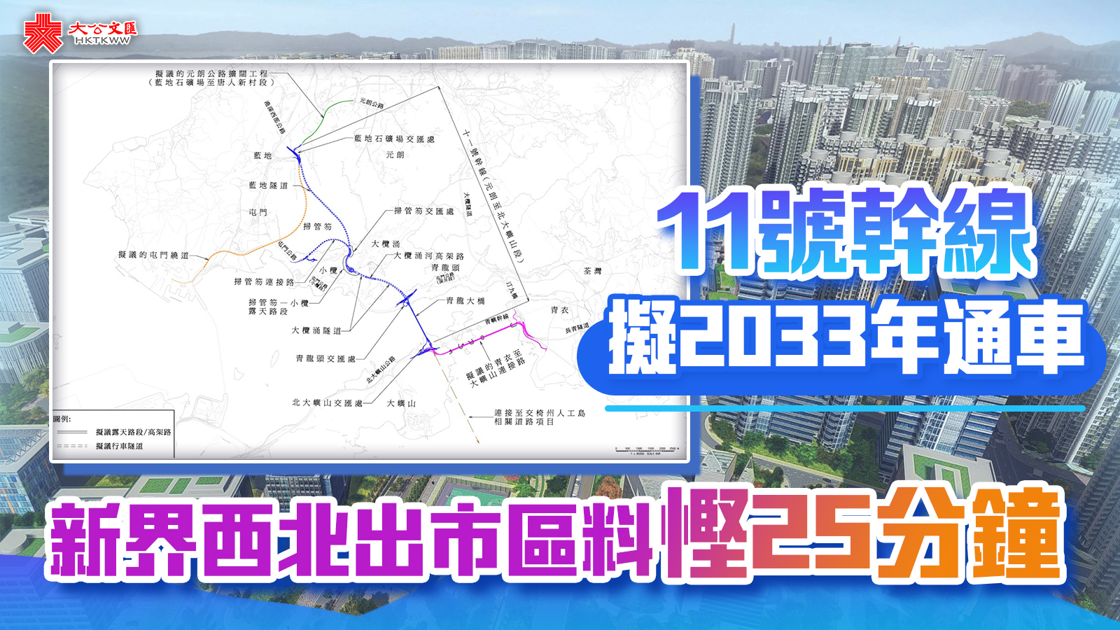 大公文匯全媒體報道,政府近年着力發展新界西北,有意興建11號幹線,配合洪水橋新發展區及元朗南發展等大型發展計劃,以增加房屋及經濟用地的供應。路政署近日向屯門區議會提交文件,簡介11號幹線(元朗至北大嶼山段)走線方案,目標是於2033年或以前開通整組連接新界西北和市區的幹道。署方預計在整組策略性幹道落成後,在早上繁忙時間使用11號幹線將會比使用屯門公路最多節省大約25分鐘。
