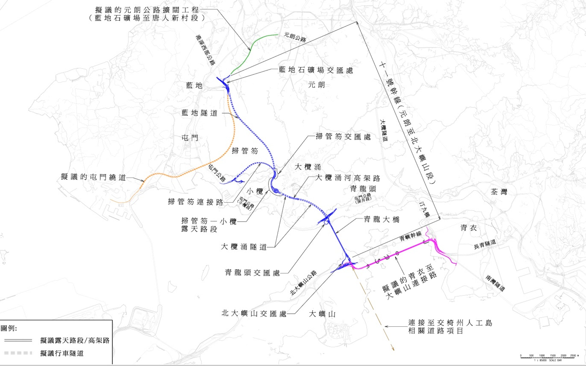 另外,11號幹線中的青龍大橋,原擬為雙程三線的跨海大橋。不過根據今次的文件,最新方案改為雙程四線,建成後將是全港首座南北行雙程四線、合共八條線的跨海大橋。
