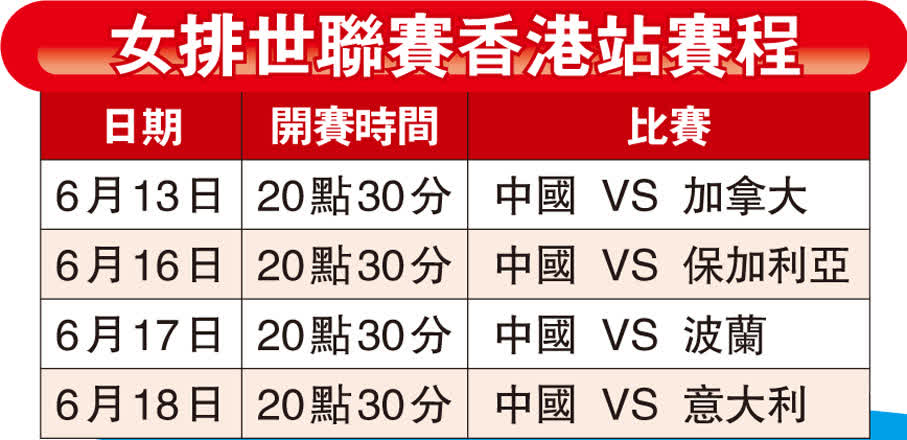 根據世界聯賽賽程安排,中國女排從五月底開始先後在日本名古屋、中國香港和韓國水原進行三站分站賽,如果最終排名前八,將獲得前往美國參加淘汰賽的資格。