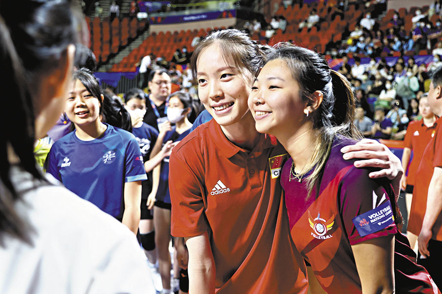 國家女排昨日完成訓練後,全隊球員便化身成為客席教練,向一班本地青少年球員傳授上手升球、下手墊球及扣球等技術,最後還進行3打3及6打6的對抗賽。過程中所有參與者都十分投入,國家女排亦不時開懷大笑。