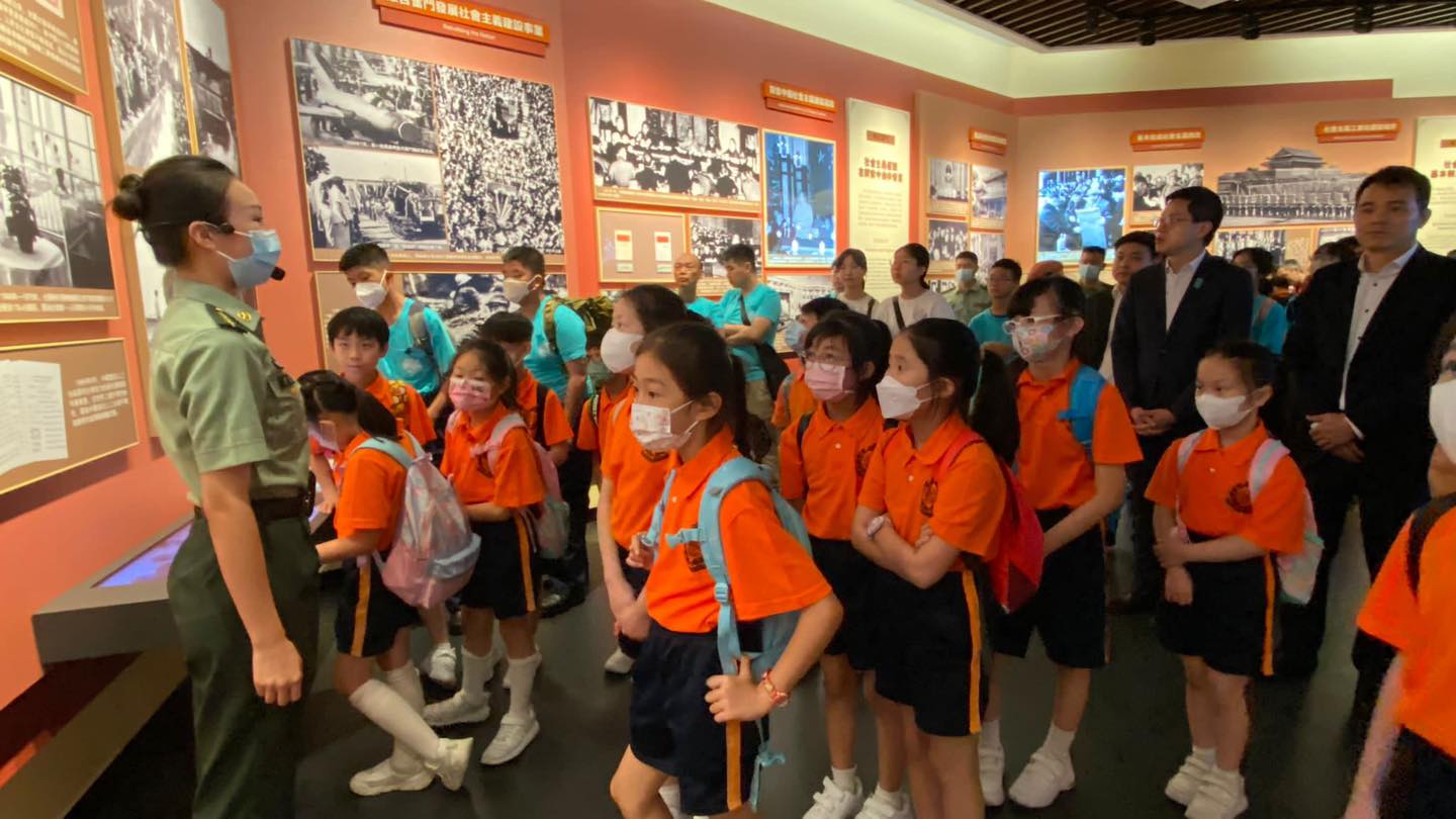 約80位參觀成員先在展覽中心內整齊列隊唱國歌,然後在駐港部隊代表的帶領下,參觀以「夢起東方」為題的展覽,當中包括「中國夢」、「強軍夢」、「香江衛士」的主題展廳,以及軍事裝備模型展示區。成員對國家歷史有更深入的認識之餘,亦對國家軍事設備的先進表示讚嘆,對祖國的自豪感油然而生。