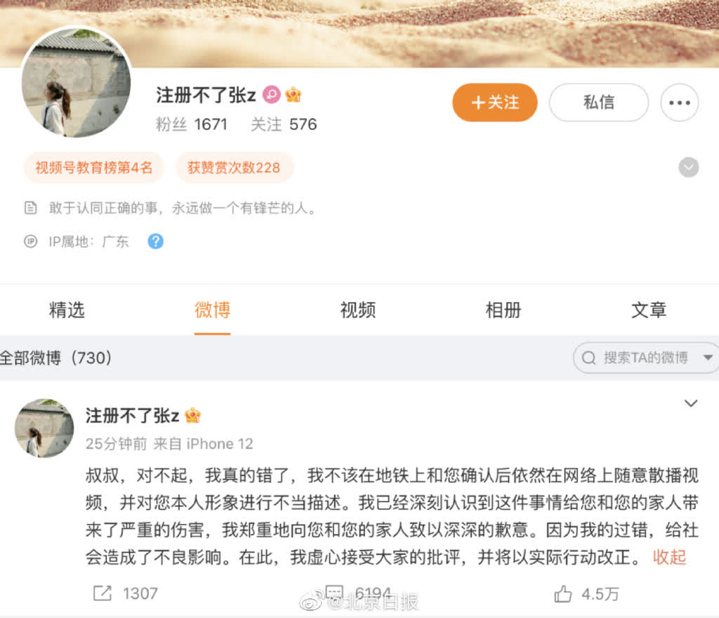「其實我爸並不知道視頻傳播意味着什麼,他以為對方只是發到朋友圈或者短視頻平台,刪掉就沒事了,也沒有把這件事情告訴家人。」直到6月10日,鄧先生在社交平台刷到了上述視頻片段,認出了父親,才知道這件事,感到非常生氣,並決定報警,「我們希望她能公開道歉。」