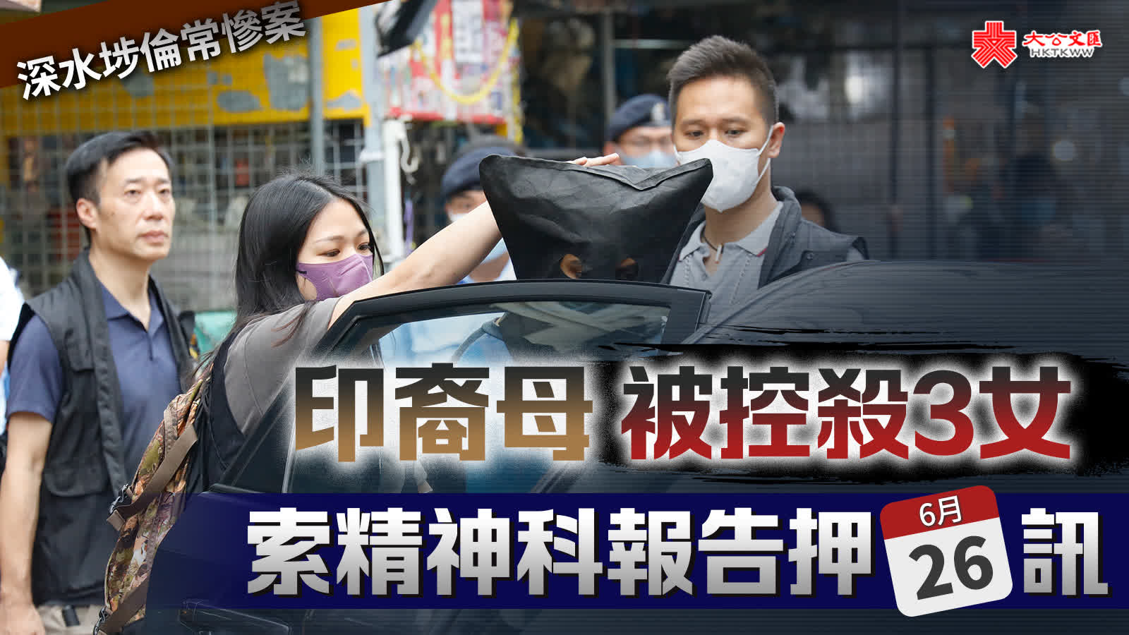 大公文匯全媒體報道,深水埗桂林街本月5日發生倫常慘劇,一名29歲印度裔母親疑將3名年僅2至5歲的女兒焗死,案件今日(12日)在九龍城裁判法院提堂。女被告今日下約2時被押送至法院上庭。被告暫時毋須答辯,裁判官應控方要求將案件押後至6月26日再訊,以便為被告索取2份精神科醫生報告,其間被告須還押小欖精神病治療中心。