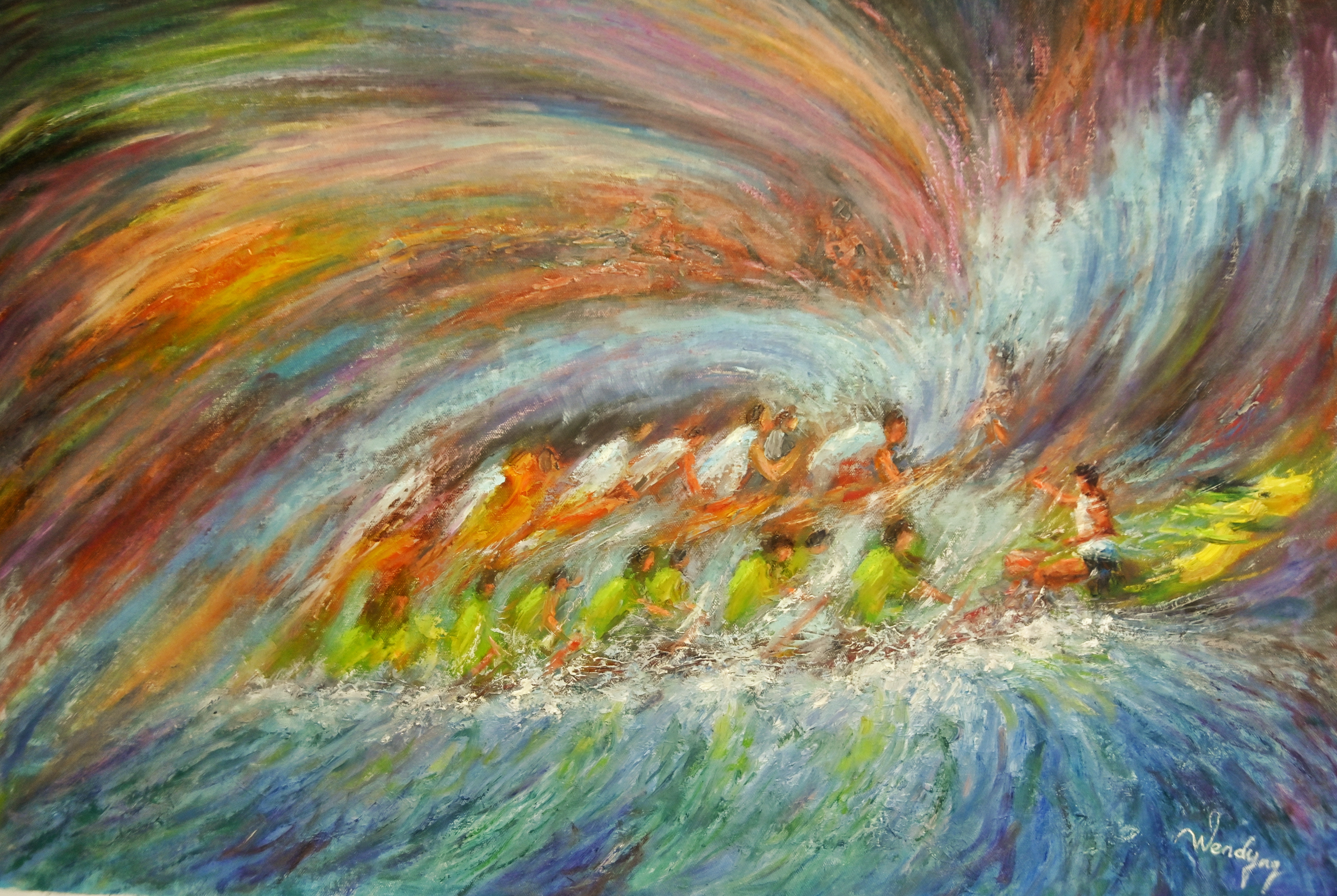 畫家代表、星河畫藝會伍汝會長盛讚藝術家們專門創作端午文化書畫作品,盛讚潮州商會和藝術香港舉辦具有愛國愛鄉意義的文化活動,盛讚潮州糉子的風味。他本次的參展作品是油畫《極速》,反映龍舟賽事的拚搏精神。