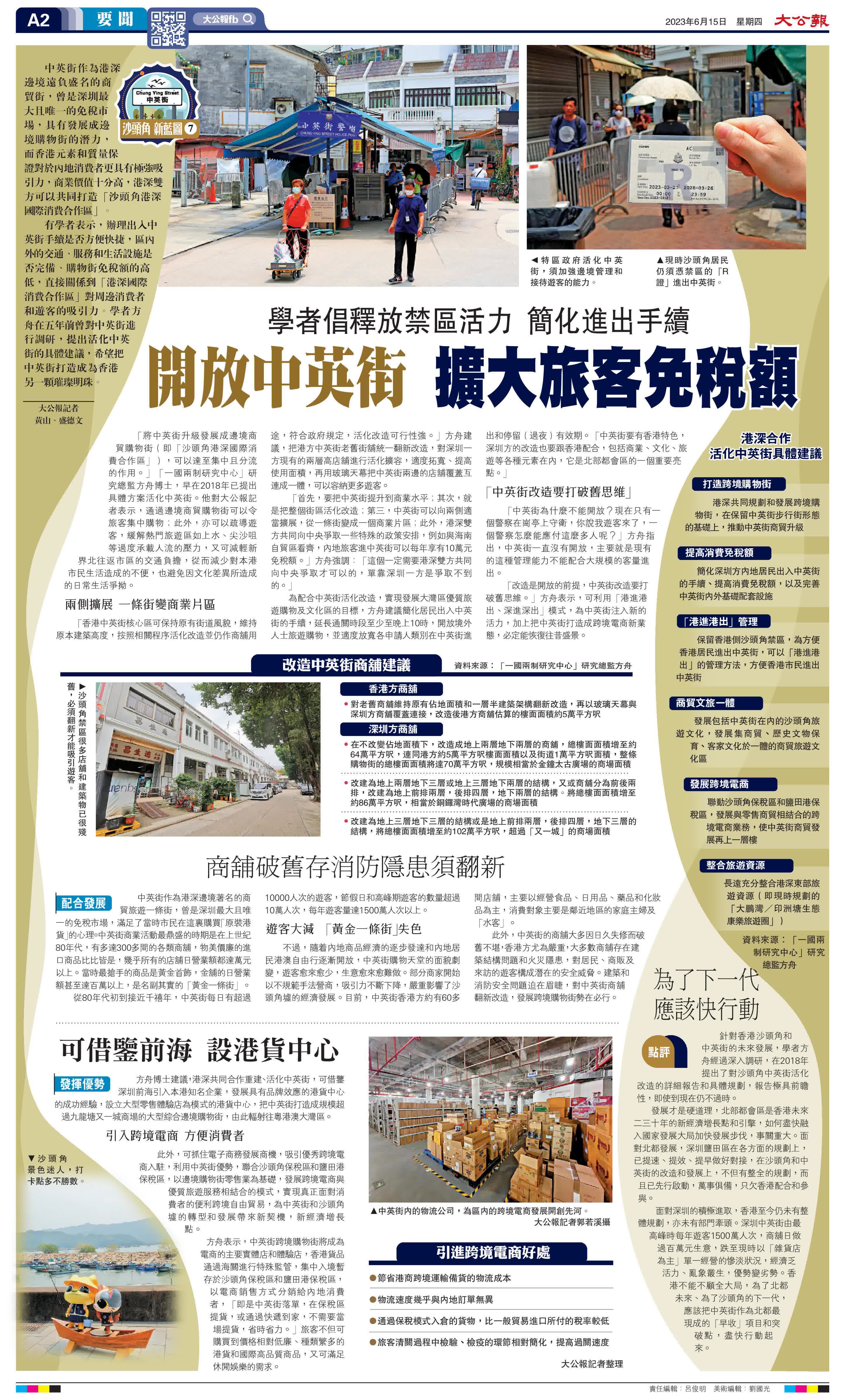 簡化深圳方內地居民出入中英街的手續、提高消費免稅額,以及完善中英街內外基礎配套設施