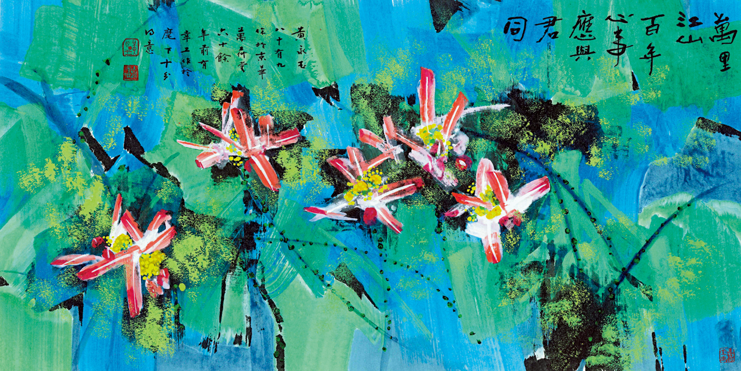 •《大公報》110周年報慶,謙稱「大公報小兵丁」的黃永玉欣然贈畫《彩荷圖》道賀。