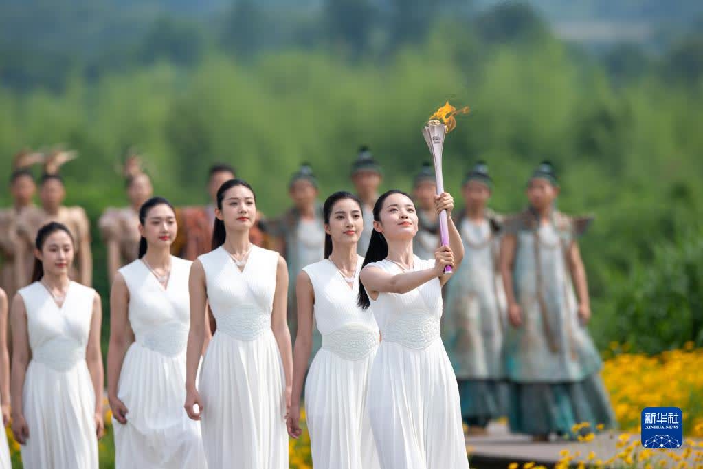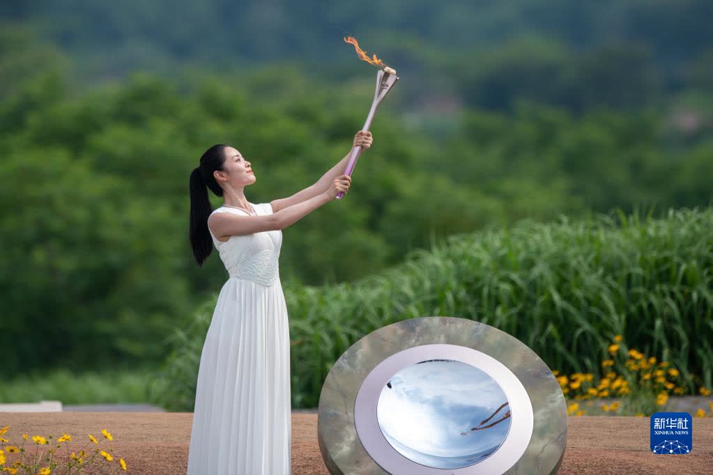 據新華社消息,15日上午,杭州第19屆亞運會火種在杭州良渚古城遺址公園大莫角山成功採集。