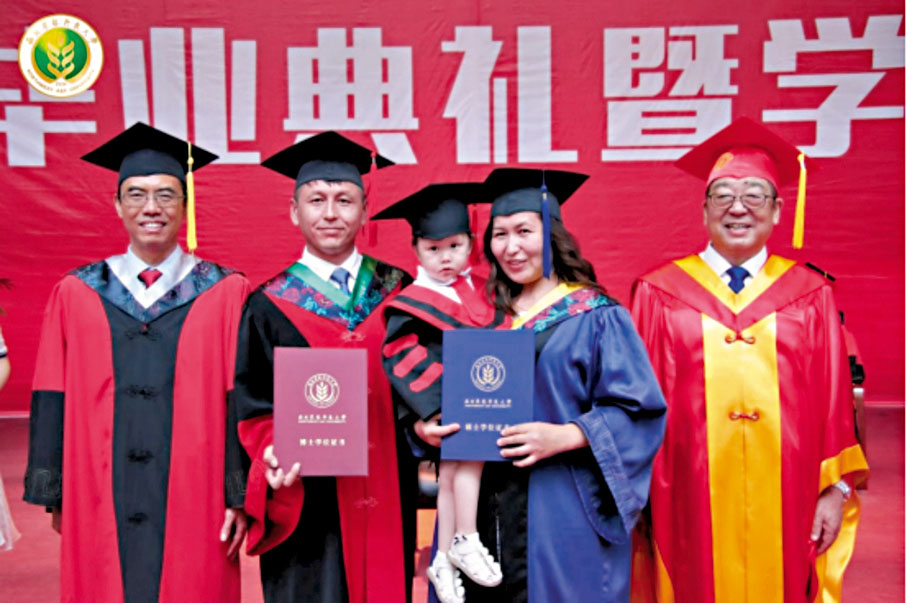 哈斯鐵爾曾是哈薩克斯坦賽富林農業技術大學的一名教師。2016年「絲綢之路大學聯盟」成員西北農林科技大學發起成立「絲綢之路農業教育科技創新聯盟」,作為聯盟成員單位的一員,哈斯鐵爾被推薦到西北農林科技大學留學。隨後,他的妻子于巧也毅然辭掉工作,隨丈夫一起來中國求學。在西農學習期間,他們的女兒出生了,就此開啟了一家三口的「留學」生涯。