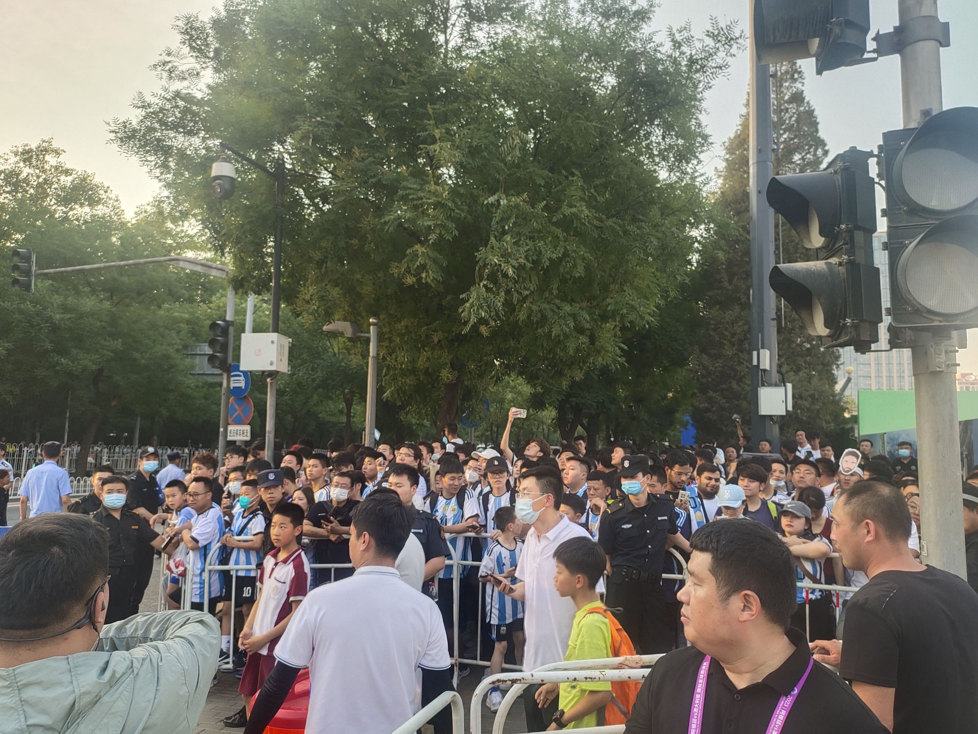 記者現場看到,當晚比賽第66分鐘,一名身穿美斯球衣的球迷沖入場內,擁抱美斯後,與多名阿根廷隊員擊掌,他在場上不停奔跑,倒地後被安保「請」出球場。比賽結束後一個多小時,仍有大批球迷守候在工體西門外,期待阿根廷隊大巴車駛出時,能夠看到偶像美斯的身影。
