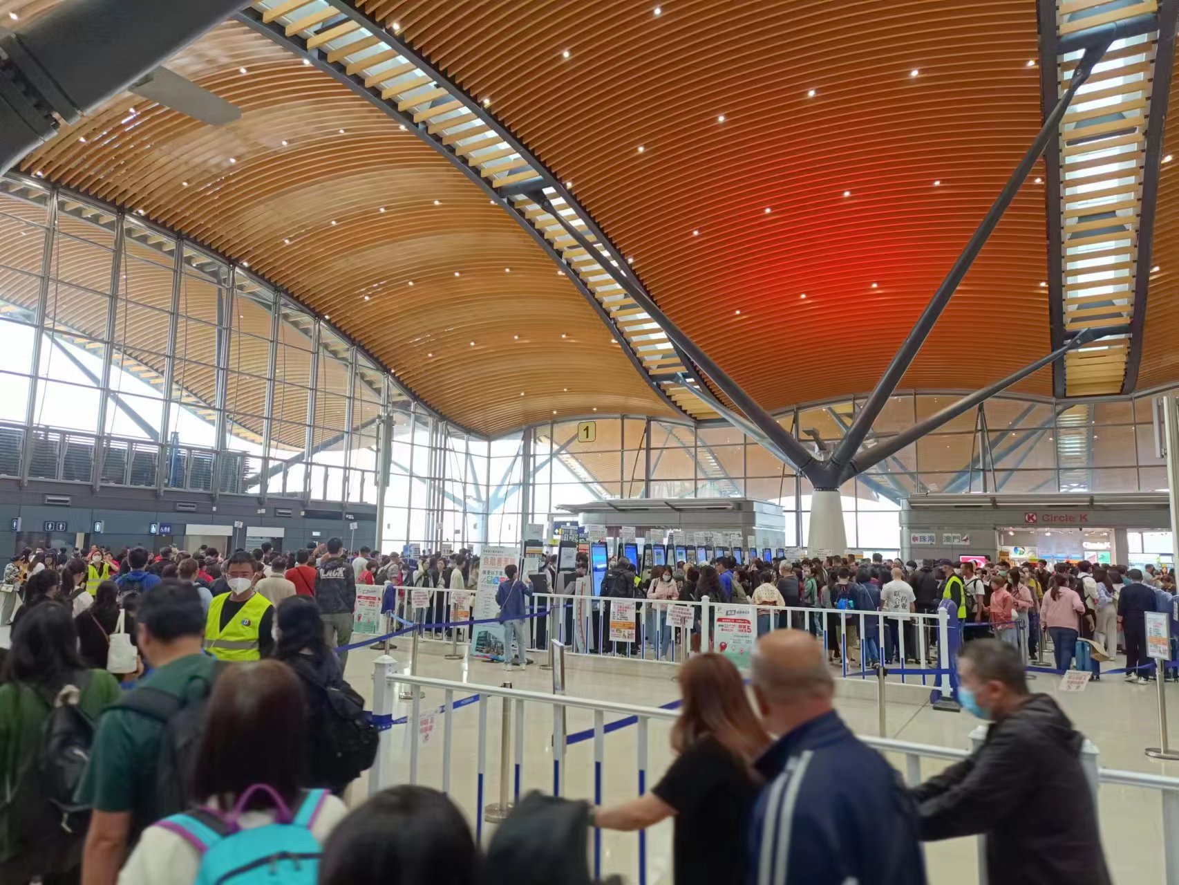大公文匯全媒體報道,天文台今日(17日)下午2時05分發出紅色暴雨警告信號,大雨傾盆而下。有讀者報料指,紅色暴雨警告下,港珠澳大橋香港口岸出境大堂天花滲水,水流從天而降形成一道水簾。
