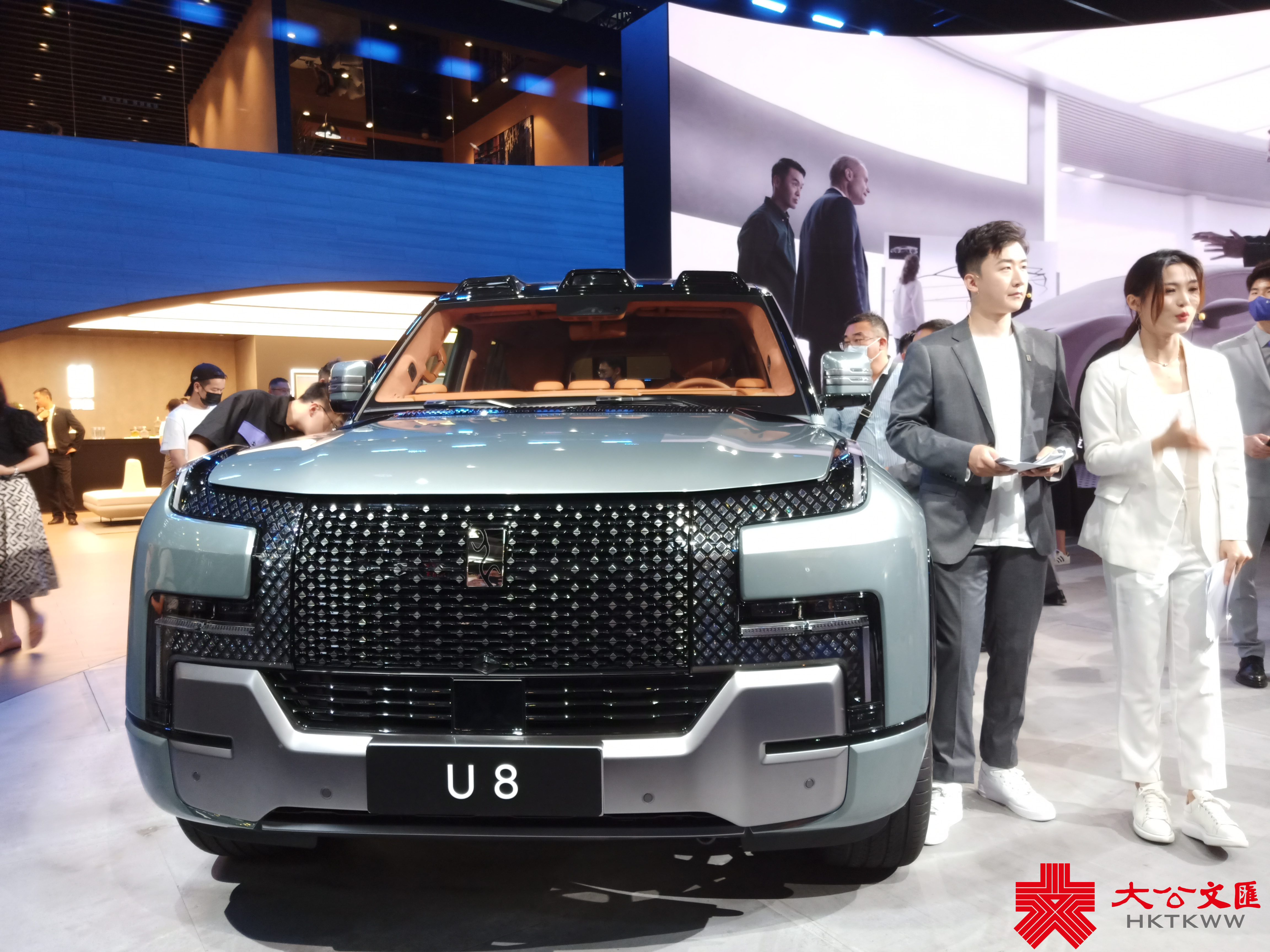 繼BBA(奔馳、寶馬、奧迪)傳統豪華品牌之後,比亞迪是在粵港澳大灣區車展打造品牌專館的首個民族品牌。在6號館,比亞迪攜旗下所有系列和品牌產品亮相,其中,旗下高端品牌「仰望」首次亮相,越野車U8系列、豪車U9在現場開啟預售,儘管U8售價高達109.8萬元,仍然吸引大量觀眾試駕。