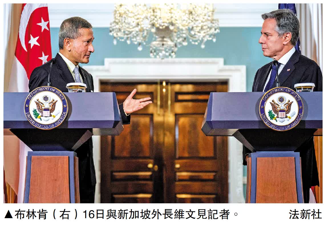 在場的新加坡外長維文表達了對布林肯訪華之行的重視和肯定。他表示,這是一次重要訪問,「是一個非常重要和關鍵的時刻」,「世界各國都在矚目」;他希望並相信中美能管控分歧,建立開放的溝通渠道。