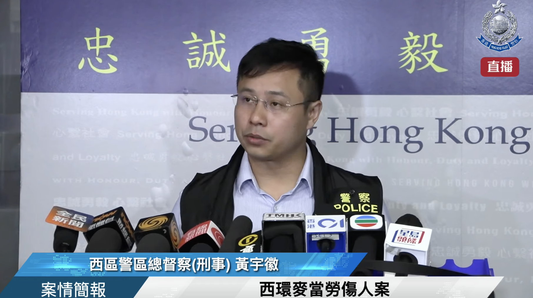 黃宇徽表示,衝突過後,行兇者離開快餐店,到附近的鮮肉檔拿走兩把刀,之後折返快餐店襲擊受害人的頭部,港島衝鋒隊接報後兩分鐘內前往調查,並向巡邏的人員發布有關行兇者衣着等資料,大約十幾分鐘後在德輔道西附近將行兇者拘捕。